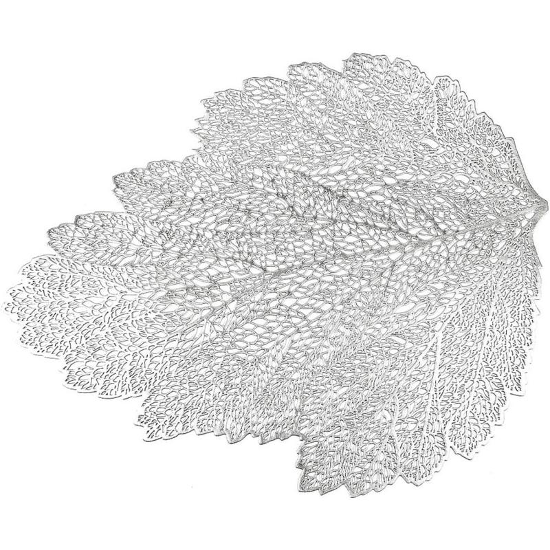 Салфетка сервировочная (плейсмат) Nouvelle Daily Аjoure 36×46 см серебристая (4 штуки в упаковке)<br><br>Сервировочные салфетки играют важную роль в оформлении стола. Сервировка стола данными салфетками даёт огромное пространство для творчества и воплощения дизайнерских идей. Их с лёгкостью можно менять под настроение или событие, подбирая подходящий дизайн.<br>Плейсмат плетёный не скользящий в форме листа можно использовать для сервировки праздничного и повседневного стола, декора в кухне, гостиной, спальне, для защиты поверхностей от повреждений. Может использоваться как: подстановочная салфетка, коврики, подставка под горячее, подложка для приборов, тарелок и посуды, декоративная салфетка, набор плейсматов, набор салфеток для сервировки стола.<br>Дизайн рисунка: лист.<br>Комплектация: салфетка — 4 шт.<br>Размер штуки: 36×46 см.<br>Материал: ПВХ.