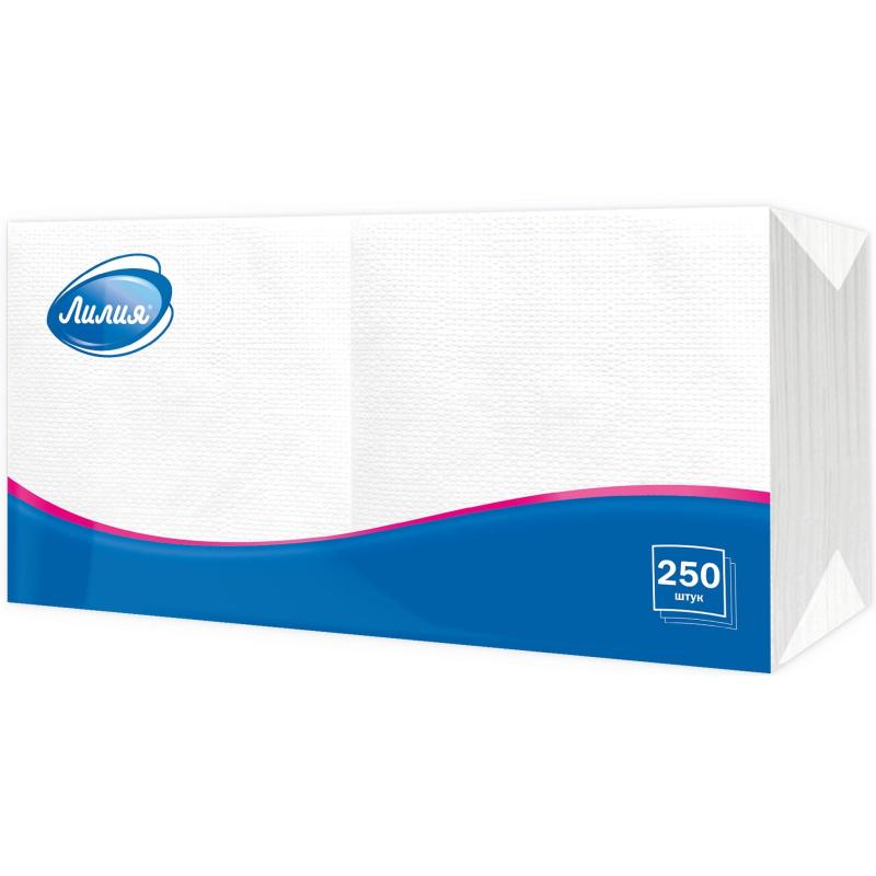 Салфетки бумажные Лилия 1-слойные 24×24 см белые (250 листов в пачке)<br><br>Салфетки бумажные подходят для повседневного использования.<br><br>Назначение/особенности/сырьё: Для повседневного использования, мягкая салфетка с тиснением, хорошо впитывает, не оставляет ворсинок при использовании, изготовлена из 100% салфеточной основы.<br><br>Тип упаковки: Полиэтилен.<br><br>Размеры: 24×24 см.