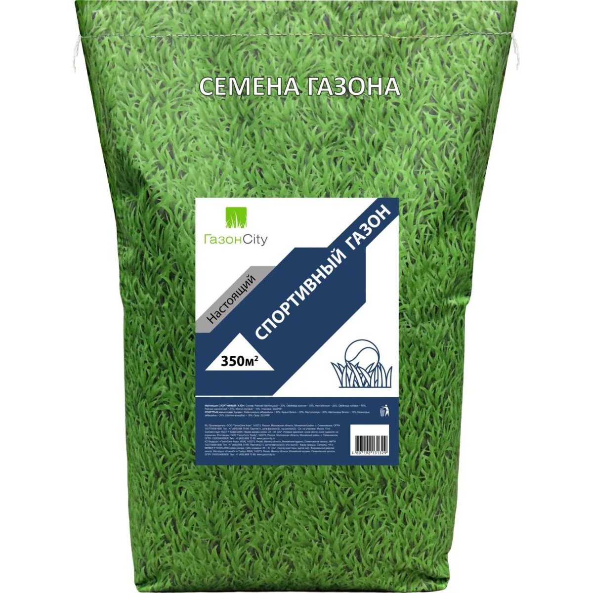 Семена газонной травы Газонcity Настоящий Спортивный 10 кг<br><br>Семена газонной травы из серии «Настоящий газон» предназначены для создания плотного и устойчивого к нагрузкам травяного покрытия. Смесь «Спортивный» подходит для участков с высокой проходимостью, включая спортивные и детские площадки, игровые зоны и дорожки.<br><br>Состав травосмеси включает райграс пастбищный, овсяницу красную, фестололиум, овсяницу луговую, райграс однолетний и мятлик луговой. Эти культуры быстро прорастают, образуют прочный дёрн и выдерживают частую эксплуатацию. Смесь легко переносит регулярную стрижку и сохраняет декоративный вид в течение сезона.<br><br>Состав: райграс пастбищный 20%, овсяница красная красная 20%, фестололиум 20%, овсяница луговая 10%, райграс однолетний 20%, мятлик луговой 10%.<br><br>Семена предназначены для посева в открытый грунт в период с марта по октябрь. Растения многолетние, адаптированы к различным климатическим условиям. Один мешок весом 10 кг рассчитан на засев площади до 350 кв. м. Продукт производится в России и фасуется в плотную мешковую упаковку, удобную для транспортировки и хранения.