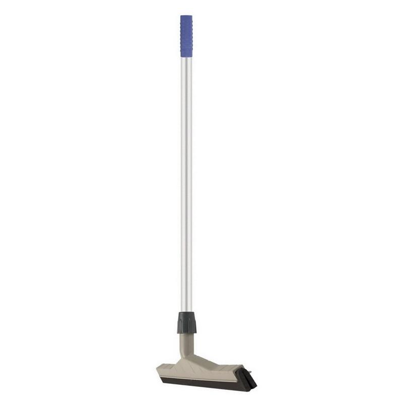 <p>Стяжка для удаления жидкости с различных напольных покрытий и из неровностей и швов. Состоит из легкой алюминиевой ручки с пластиковым держателем в верхней части и насадки, которая изготовлена из мягкой пористой двойной резины. Длина рукояти составляет 130 см, а ширина моющей поверхности равна 55 см. Рукоятка вставляется в насадку и закручивается держателем.</p>