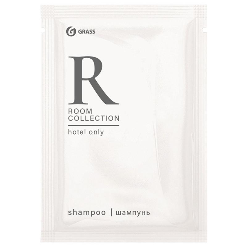 <b>Шампунь Grass Room 10 мл</b> <br>Шампунь для гостиниц и путешествий. Эффективная формула на основе натуральных компонентов сохраняет структуру волос, придает волосам мягкость и здоровый блеск, подходит для ежедневного применения. <br><b>Состав:</b> Aqua, Sodium Laureth Sulfate, Cocamidopropyl. <br><b>Срок годности:</b> 36 месяцев с даты изготовления. <br><b>Количество в упаковке:</b> поставляется упаковками по 500 саше.