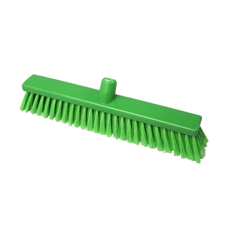 Щётка для пола FBK 40 см мягкая без ручки (21306-5)<br><br>Щётка используется для уборки мелкодисперсных загрязнений на различных поверхностях. Длинный ворс с расщеплёнными кончиками хорошо работает на пористых покрытиях, собирая пыль и мелкий мусор. Щётка применяется в клининге, на предприятиях пищевой промышленности и в секторе HoReCa.<br><br>Основание изготовлено из полипропилена, щетина — из полиэтилена длиной 5.5 см и толщиной 0.25 мм. Мягкий ворс посажен в пять рядов для плотного контакта с поверхностью. Щётка оснащена креплением с еврорезьбой диаметром 23 мм и совместима со всеми рукоятками FBK. Рукоятка приобретается отдельно.<br><br>Изделие соответствует требованиям ХАССП, выдерживает температуры от —20 °C до +80 °C и допускает автоклавирование при +100 °C. Размер рабочей части — 40×5 см. Вес изделия — 0.48 кг.