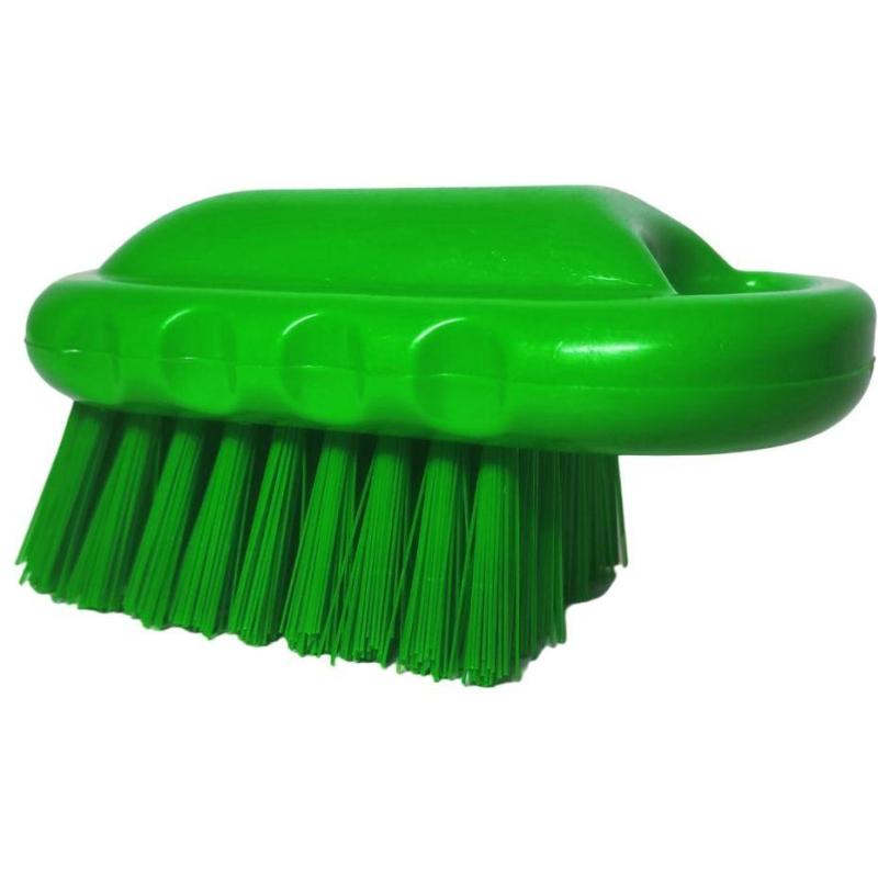 Щётка для мытья посуды/оборудования и рабочих поверхностей Haccper жёсткая 124×61 мм зелёная<br><br>Щётка для разделочных досок Haccper жёсткая предназначена для мойки и чистки плоских поверхностей, разделочных досок и небольших рабочих пространств. Щётка оснащена углублениями для пальцев, что обеспечивает удобство использования. Модель соответствует требованиям ХАССП, что позволяет использовать её в пищевом производстве и в секторе HoReCa.<br><br>Щётка выдерживает температуры от −18 °С до +120 °С. Материал щетины — синтетическая, основание — полибутилентерефталат. Размер рабочей части составляет 61×90 мм, длина щетины — 33 мм. Общая длина щётки — 124 мм. Цвет щётки — зелёный.<br><br>Внешний вид и/или характеристики товара могут быть изменены производителем в соответствии с производственным процессом.
