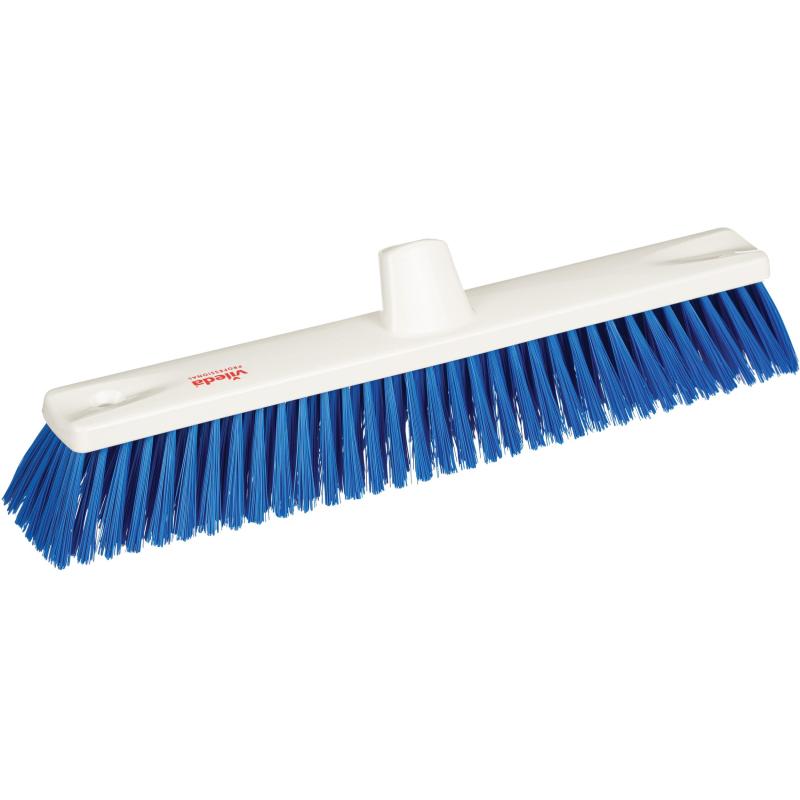 Щётка для пола Vileda Professional 50 см жёсткая без ручки (145882)Щётка для пола предназначена для профессионального подметания и очистки поверхностей, устойчивых к истиранию. Жёсткая густая щетина эффективно собирает средний и крупный мусор, а также подходит для оттирки полов и обработки шероховатых покрытий.<br><br>Щётка используется как внутри помещений, так и на улице. Её применяют для уборки асфальта, бетона, камня, плитки, наливных полов, металла, стекла, ковровых, безопасных и спортивных покрытий. Резьбовое крепление ручки под углом 45 ° позволяет работать в двух направлениях и задействовать всю ширину рабочей части.<br><br>Щетина изготовлена из полибутилентерефталата, закреплена скобами из нейзильбера и устойчива к химическим средствам. Корпус выполнен из полипропилена. Конструкция гигиенична, устойчива к коррозии, выдерживает автоклавирование при температуре до +134 °C.<br><br>Длина щётки — 50 см, рабочая часть шириной 5 см. Длина ворса составляет 6 см, диаметр волокон — 0.25 мм. Щетина расположена в шесть рядов. Вес изделия — 360 г. Ручка в комплект не входит, крепление резьбовое (диаметр тулейки 25 мм).