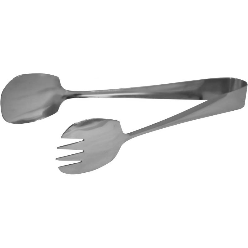 Щипцы для салата нержавеющая сталь (50715). <br>Кухонные щипцы для салата — удобное и функциональное приспособление, значительно облегчающее сервировку стола и приготовление блюд. Одна сторона сделана в виде сплошной ложки, а на другой есть прорези по типу вилки. Сквозь отверстия вытекают лишние соки и заправка. <br><br>— перед первым использованием требуется тщательно промыть изделия; <br>— хранить изделия в чистом, сухом виде; <br>— не рекомендуется использовать губки с абразивным слоем; <br>— не рекомендуется промывка изделий в посудомоечной машине с использованием моющих средств, в состав которых входит активный кислород. <br><br>Посуда для профессионального использования создана для ресторанов, кафе и других заведений общественного питания. Прочная, термостойкая и удобная — оптимальное решение для интенсивной работы.