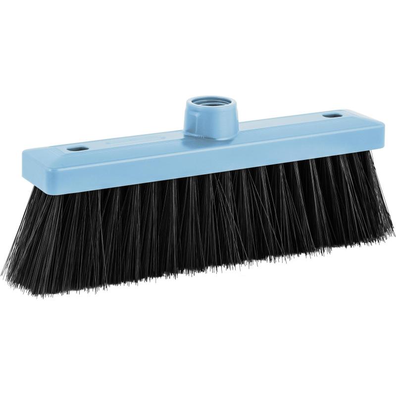 Щётка для пола Spin&clean Step 27 см средней жёсткости без ручки<br><br>Щётка с щетиной средней жёсткости предназначена для сухой уборки в доме и на улице. Корпус из прочного пластика со скруглёнными краями позволяет аккуратно убирать пыль и грязь даже рядом с мебелью.<br><br>Щетина длиной 7 см плотно набита, благодаря чему эффективно собирает мусор, шерсть и мелкие частицы в углах и труднодоступных местах. Распушённые края щетинок обеспечивают более тщательную уборку. Основание легко моется, устойчиво к горячей воде и бытовой химии, что делает щётку долговечной и практичной в использовании.<br><br>Рабочая часть шириной 27 см оснащена креплением с еврорезьбой диаметром 20 мм. Щётка совместима со всеми ручками для щёток и швабр бренда Spin&Clean и поставляется без рукоятки.