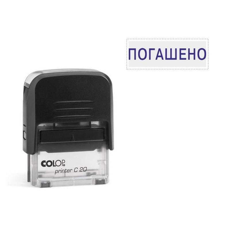 <p>Штамп стандартный Colop Printer C20 1.3 позволяет получить оттиск со словом 'ПОГАШЕНО'. Компактный надежный пластиковый корпус с автоматическим окрашиванием текста. Обновленный дизайн корпуса серии Colop Compact, инновационный механизм фиксации клавишами, засечки/ребра в зоне захвата, устойчивость в перевернутом положении, встроенные антискользящие элементы, высокое расположение текстовой платы и прозрачное основание для удобства размещения штампа на документах делают работу более комфортной. Размер оттиска — 35×4 мм. Комплектация: штамп, синяя сменная штемпельная подушка E/20. Внимание! Все сменные штемпельные подушки, которыми комплектуется продукция Colop, заправлены краской Noris (Германия) на водной основе с добавлением глицерина и предназначены для проставления оттисков на бумагу и пористые поверхности. При необходимости проставления оттисков на непористые поверхности, необходимо заказать специальную неокрашенную подушку, совместимую со спиртосодержащими красками, во избежание затвердевания подушечного материала стандартной сменной подушки. Заказывается индивидуально.</p>