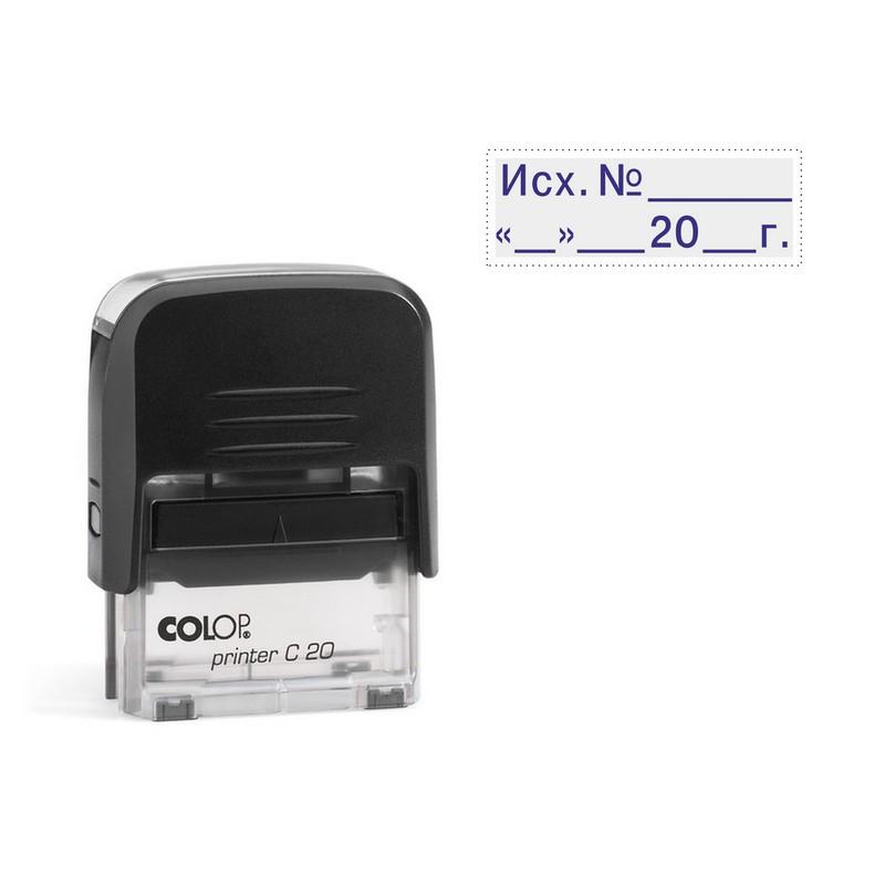 <p>Штамп стандартный Colop Printer C20 3.4 позволяет получить оттиск со словом 'Исх. № ». Компактный надежный пластиковый корпус с автоматическим окрашиванием текста. Обновленный дизайн корпуса серии Colop Compact, инновационный механизм фиксации клавишами, засечки/ребра в зоне захвата, устойчивость в перевернутом положении, встроенные антискользящие элементы, высокое расположение текстовой платы и прозрачное основание для удобства размещения штампа на документах делают работу более комфортной. Размер оттиска — 35×11 мм. Комплектация: штамп, синяя сменная штемпельная подушка E/20. Внимание! Все сменные штемпельные подушки, которыми комплектуется продукция Colop, заправлены краской Noris (Германия) на водной основе с добавлением глицерина и предназначены для проставления оттисков на бумагу и пористые поверхности. При необходимости проставления оттисков на непористые поверхности, необходимо заказать специальную неокрашенную подушку, совместимую со спиртосодержащими красками, во избежание затвердевания подушечного материала стандартной сменной подушки. Заказывается индивидуально.</p>
