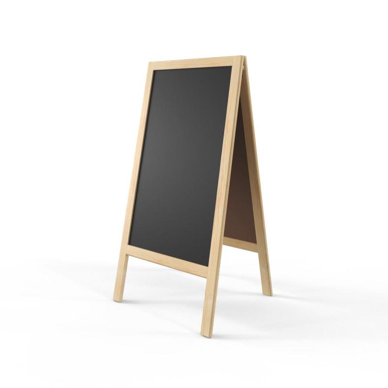Доска-штендер — стритлайн меловая для письма мелом, меловым маркером. Каркас выполнен из шлифованной лакированной сосновой доски со скругленными углами. Информационной поле — лакированной ХДФ 4 мм, что позволяет повысить устойчивые к истиранию показатели покрытия. Дополнит интерьер кафе, ресторана, магазина, офиса. Выполнен в современном ЭКО-стиле.