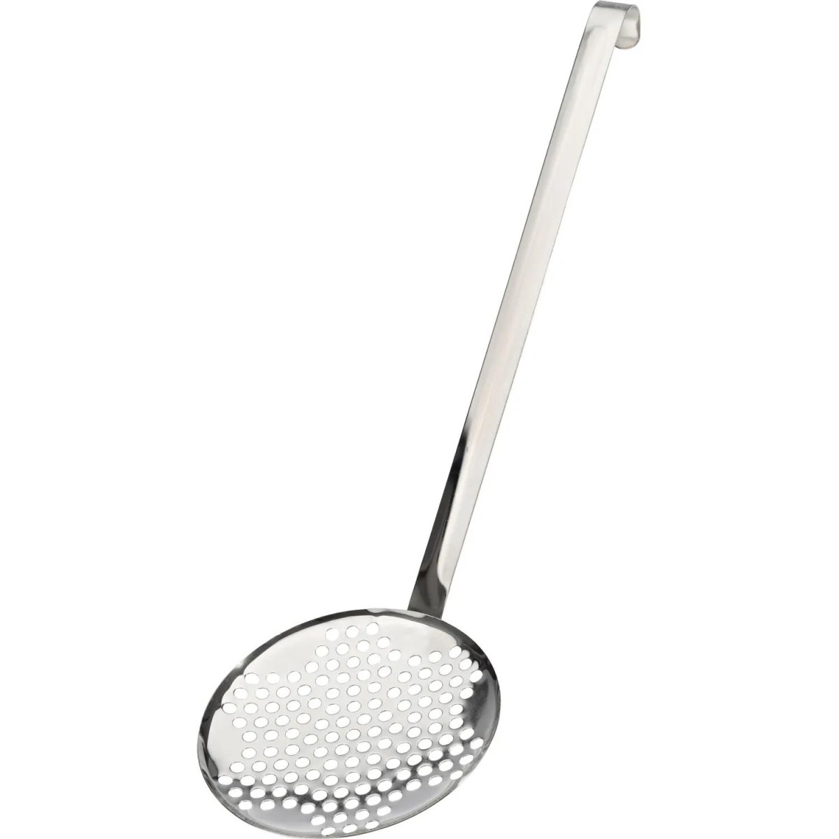 Шумовка Amet нержавеющая сталь 53 см (1с366) <br><br>Шумовка Amet — незаменимый кухонный инструмент, который призван сделать приготовление пищи более удобным и эффективным. Первым и, пожалуй, самым важным свойством шумовки является её качественный материал и долговечность. Кроме того, такой материал обеспечивает лёгкость в уходе, что делает шумовку очень удобной в использовании. Вторым важным свойством шумовки является её универсальность и многофункциональность. Она предназначена для извлечения приготовленных продуктов из кипящей жидкости (воды, бульона, масла). Верхняя часть ручки с загнутым концом для удобного удержания и подвешивания на кухонный рейлинг. <br><br>— перед первым использованием требуется тщательно промыть изделия; <br>— хранить изделия в чистом, сухом виде; <br>— не рекомендуется использовать губки с абразивным слоем; <br>— не рекомендуется промывка изделий в посудомоечной машине с использованием моющих средств, в состав которых входит активный кислород. <br><br>Посуда для профессионального использования создана для ресторанов, кафе и других заведений общественного питания. Прочная, термостойкая и удобная — оптимальное решение для интенсивной работы.