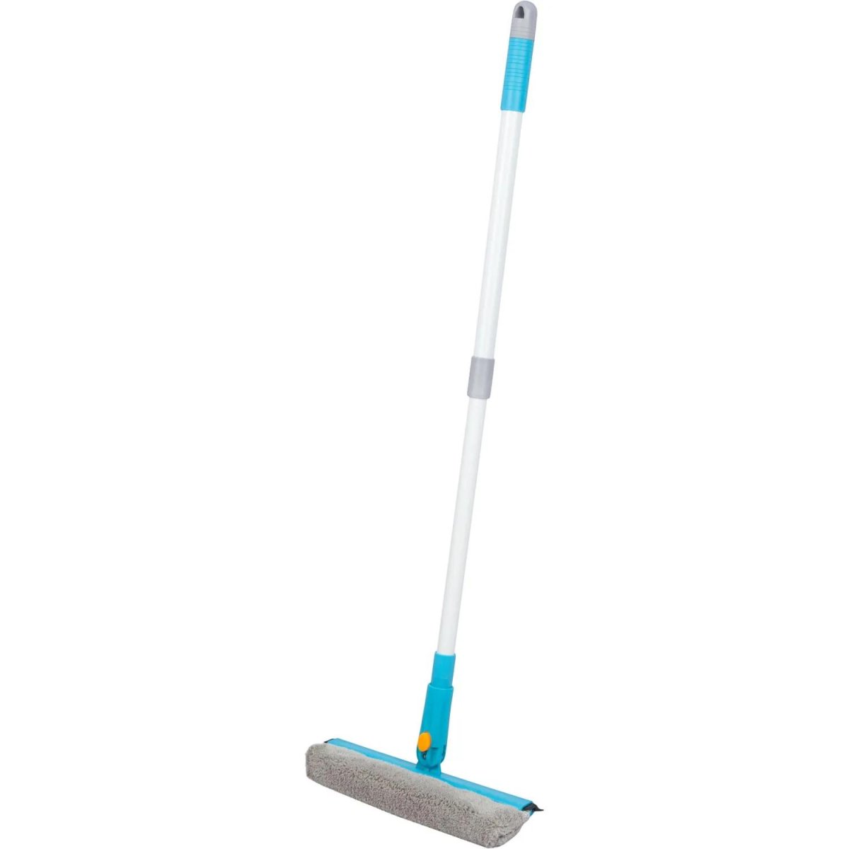 Швабра для мытья окон с шубкой из микрофибры и сгоном (рабочая часть 25 см, рукоятка 73 см)<br><br>Готовое решение для быстрой и эффективной мойки стеклянных поверхностей. Легко удаляет разные виды загрязнений благодаря насадке-шубке из микрофибры, которая удобно снимается для замены или стирки. Удлинённая телескопическая ручка позволяет комфортно обрабатывать труднодоступные участки. Изготовлено из качественных материалов: полипропилена, полиэстера, термопластичной резины и стали. Ширина насадки-шубки — 25 см, выдвижная длина ручки — 73 см.<br><br>Внешний вид и/или характеристики товара могут быть изменены производителем в соответствии с производственным процессом.