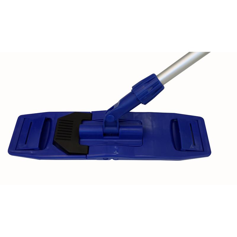 Швабра флаундер (плоская) ЭкоКоллекция без насадки рукоятка 140 см металл/пластик<br /> <br /> Швабра предназначена для сухой и влажной уборки. Защёлка-фиксатор позволяет быстро сложить рабочую поверхность для смены или отжима насадки-МОПа. Благодаря поворотному механизму модель может использоваться и на горизонтальных, и на вертикальных поверхностях. Используется в комплекте с насадками двух типов: с карманами, надевающимися на рабочую поверхность, и с «ушами», для которых предусмотрены специальные крепления.<br /> Комплект поставки:<br /> — пластиковый держатель для насадок с педалью (40×10 см);<br /> — алюминиевая рукоятка 140 см (несменная, нетелескопическая).