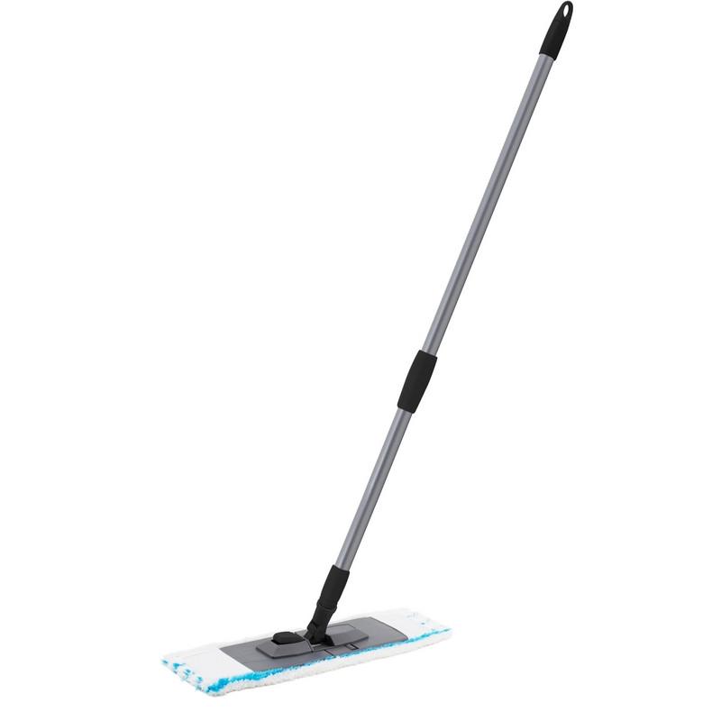 Швабра флаундер (плоская) Spin&clean Soft насадка микрофибра 40×10.5 см телескопическая рукоятка 76-120 см металл<br /> <br /> Предназначена для сухой и влажной уборки без использования химических средств. Защёлка-фиксатор позволяет быстро сложить рабочую поверхность держателя для смены или отжима МОПа. Благодаря поворотному механизму может использоваться и на горизонтальных, и на вертикальных поверхностях. Удобная телескопическая ручка позволяет не наклоняться при уборке и экономить место при хранении в сложенном положении.<br /> <br /> Комплект поставки:<br /> — металлическая рукоятка, раздвигающаяся до 120 см;<br /> — держатель 2.5 см с плоской полипропиленовой платформой размером 40×10.5 см (допускается отклонение в пределах 5 мм), хорошо прилегающей к поверхности и обеспечивающей лёгкий доступ в углы и под мебель;<br /> — насадка МОП из полиэстера размером 42×13 см, бархатистая поверхность которой легко собирает пыль, волосы и шерсть домашних животных, не распространяя микрочастички в воздухе. Подлежит ручной или автоматической стирке при температуре не выше 40 °С.
