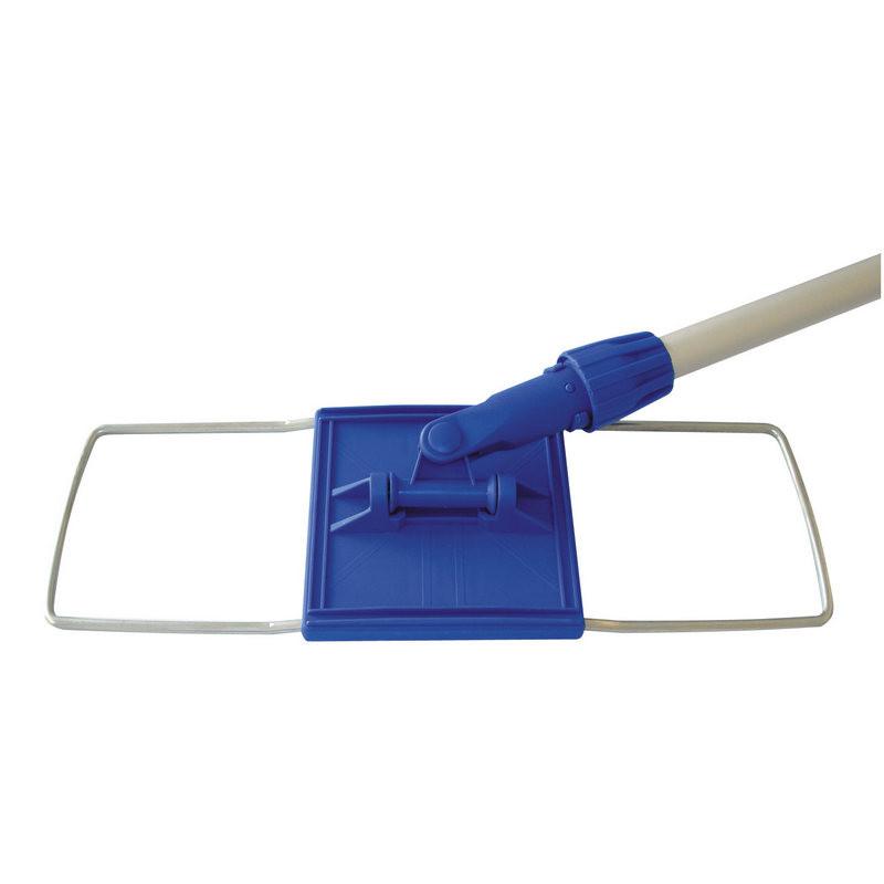 Швабра флаундер (плоская) ЭкоКоллекция без насадки рукоятка 140 см сталь/пластик<br /> <br /> Швабра для пола предназначена для сухой и влажной уборки. Защёлка-фиксатор позволяет быстро сложить рабочую поверхность для смены или отжима насадки-МОПа. Благодаря поворотному механизму модель может использоваться и на горизонтальных, и на вертикальных поверхностях. Используется с МОП-насадками с карманами. Наличие держателей-зажимов с 4 сторон позволяет использовать держатель не только со специальными МОП-насадками, но и с разными видами протирочных тканей. Подходят насадки арт. 144352, 144351, 568822, 568819, 569167 (приобретаются отдельно).<br /> Комплект поставки:<br /> — пластиковый держатель для насадок с педалью (40×10 см);<br /> — алюминиевая рукоятка 140 см (несменная, нетелескопическая).