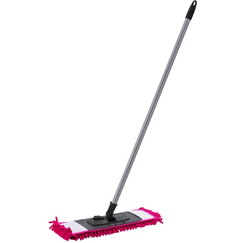 Швабра флаундер (плоская) Spin&clean Chenille насадка полиэстер 40×10 см рукоятка 120 см металл/пластик<br><br>Предназначена для сухой и влажной уборки без использования химических средств. <nobr>Защёлка-фиксатор</nobr> позволяет быстро сложить рабочую поверхность держателя для смены или отжима МОПа. Благодаря поворотному механизму может использоваться и на горизонтальных, и на вертикальных поверхностях.<br><br>Комплект поставки:<br>— рукоятка длиной 120 см из металла с защитным пластиковым покрытием;<br>— держатель с плоской полипропиленовой платформой размером 40×10 см, хорошо прилегающей к поверхности и обеспечивающей лёгкий доступ в углы и под мебель;<br>— насадка Chenille из полиэстера размером 40×10 см (с учётом выступающих волокон — 44.5×16.5 см), которая тщательно собирает пыль, волосы и шерсть домашних животных, не распространяя микрочастички в воздухе. Подлежит ручной или автоматической стирке при температуре не выше 40 °С.<br><br>Габариты в сборе в упаковке: 47×16 см. С рукояткой высота изделия 1200 мм.