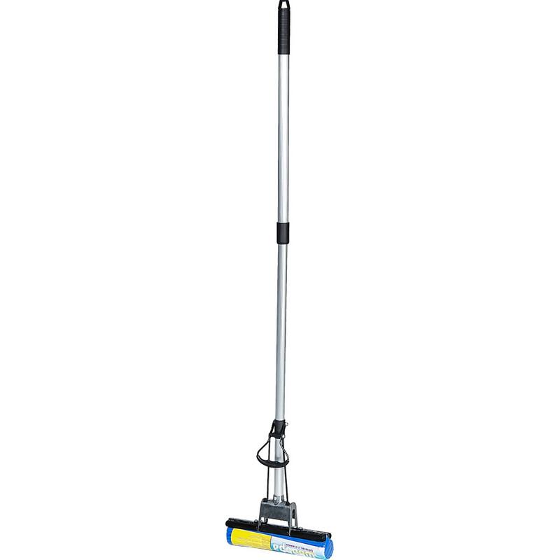 Швабра губчатая с отжимом ЭкоКоллекция насадка PVA 27 см телескопическая рукоятка 50-120 см металл/пластик<br /> <br /> Отжимная швабра позволяет отжимать губчатые насадки для уборки пола с помощью однократного нажатия ролика и педали. Это обеспечивает быстроту и гигиеничность процесса, позволяет удалить всю лишнюю влагу. Телескопическая ручка изготовлена из алюминия, может раздвигаться в диапазоне от 50 до 120 см. Для удобства пользователя на ручке швабры находится пластиковая рукоятка со специальным покрытием против скольжения рук. Механизм отжима сделан из пластика.<br /> Комплект поставки:<br /> — насадка МОП 27 см;<br /> — держатель насадки МОПа;<br /> — телескопическая рукоятка 120 см.<br /> <br /> Внимание.<br /> Не поднимать ручку отжима, если губка не размочена.<br /> 1. Перед применением положить губку в воду на 10 минут.<br /> 2. Для удаления воды и очистки губки поднять-опустить рычаг отжима, держась за кольцо.<br /> 3. После использования промыть губку чистой водой без применения химических средств и сохранять во влажном состоянии для продления срока службы.
