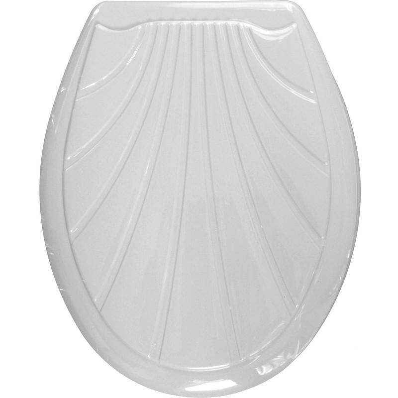 Сиденья жесткое для унитаза «Ракушка».<br>Длина крепления шпильки 10,5 см. <br>Цвет: белый. <br>Габариты (мм): 370×440×50 мм.