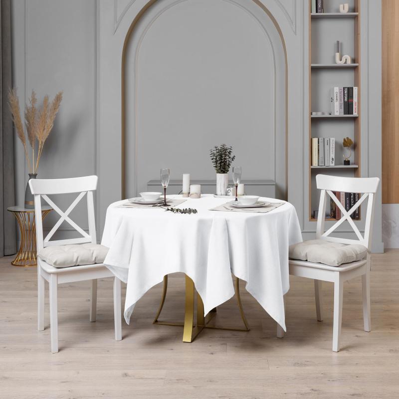 Скатерть на стол прямоугольная Волшебная Ночь 165×200 см полиэстер рогожка белая. Пастельные мягкие цвета в сочетании с фактурой льна станут замечательным дополнением кухонного интерьера. Скатерти из коллекции создадут приятный фон для фотографий кулинарных шедевров, как у food-блогеров. Приятная текстура рогожки перенесет в атмосферу легкого завтрака на террасе прованского домика или в атмосферу уютного ужина у камина, в окружении семьи.<br> Ткань рогожка является олицетворением так называемого «крафта». Красоту таких тканей обеспечивает сама фактура и меланжевый эффект (неровный окрас пряжи). Материал повторяет структуру ткани из натурального льна, но обладает дополнительными полезными свойствами: высокой износостойкостью, прочностью и устойчивостью к запахам.<br> Коллекция скатертей «Волшебная ночь» сделают кухонный интерьер по-настоящему уникальным и, в то же время, модным. Цветовая гамма коллекции подобрана в глубоких спокойных оттенках и способна легко дополнить любой кухонный интерьер, придавая ему целость и завершенность. Теперь, одним взмахом руки, кухня подстраивается под любое Ваше настроение!<br><br> Внимание! Перед первым использованием обязательна стирка!