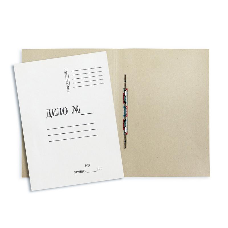 <p><nobr>Папка-скоросшиватель</nobr> Дело № формата А4 изготовлена из белого немелованного картона (плотность 260 г/кв.м). Оснащена металлическим механизмом сшивания. Длина усиков составляет 45–50 мм. Ширина корешка данного скоросшивателя составляет от 20 до 25 мм. Вместимость — до 200 листов стандартной плотности. <nobr>Папка-скоросшиватель</nobr> поставляется по 20 штук в упаковке.<br>Папки могут поставляться с разным шрифтом.</p>