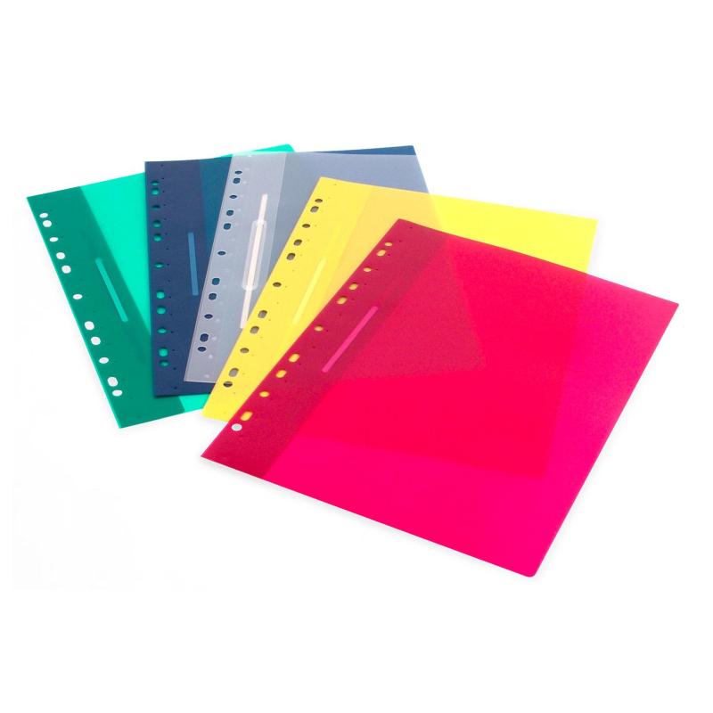 Скоросшиватель используется для хранения различного рода документации, для ведения документооборота, систематизации договоров, других важных бумаг. Дополнительные отверстия на корешке позволяют подшить скоросшиватель к папке. Скоросшиватель изготовлен из пластика с фактурой «песок». Толщина пластика — 180 мкм. Вместимость — 100 листов стандартной плотности. Цвет- ассорти (зеленый, синий, желтый, красный, прозрачный). Комплект из 10 штук (2 папки каждого цвета). Товар поставляется в нескольких вариантах цвета/дизайна (без возможности выбора).