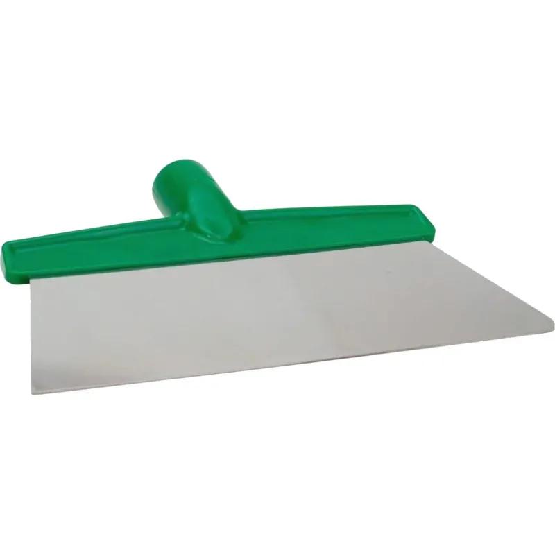 Скребок для пола FBK 280 мм зелёный<br> <br> Скребок для эффективного удаления стойких и липких загрязнений с различных поверхностей. Полезен при работе с плиточными и бетонными полами, а также для очистки производственных столов на предприятиях пищевой промышленности, при работе с выпечкой, шоколадом, мясом и жирами. Предварительное удаление таких загрязнений значительно сокращает время основной уборки.<br> <br> Конструкция без рукоятки совместима со всеми стандартными рукоятками FBK, обеспечивая универсальность использования. Инструмент изготовлен из прочного полипропиленового основания с рабочей частью из нержавеющей стали, что гарантирует химическую стойкость и долговечность.<br> <br> Скребок соответствует требованиям ХАССП и выдерживает температурный диапазон от −20°С до +120°С, включая возможность автоклавирования при максимальной температуре +120°С. Яркий цвет обеспечивает хорошую видимость в рабочей зоне, а вес 0,59 кг делает инструмент удобным в эксплуатации.<br> <br> Внешний вид и/или характеристики товара могут быть изменены производителем в соответствии с производственным процессом.