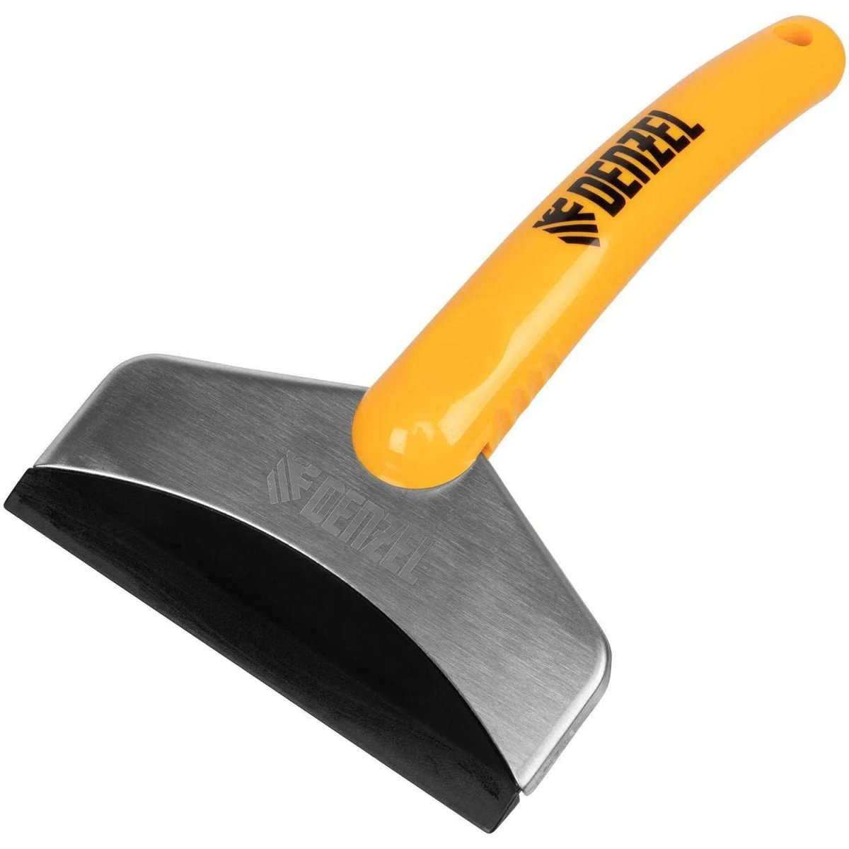 Скребок Denzel (55329)<br><br>Усиленный скребок для удаления льда Denzel 55329 применяется для очищения зеркал и стёкол автомобиля от налипшего и примёрзшего снега. За счёт небольшого размера 180×110 мм скребок удобно хранить в салоне автомобиля.<br><br>Преимущества<br>• Надёжность и высокий ресурс — скребок изготовлен из ABS пластика и нержавеющей стали.<br>• Высокая эффективность — благодаря эргономичной форме скребок быстро удаляет наледь.<br>• Аккуратная работа — конструкцией предусмотрены подпальцевые упоры, препятствующие выскальзыванию инструмента из рук.<br>• Малый вес 96 г — можно работать без усталости на протяжении длительного времени.