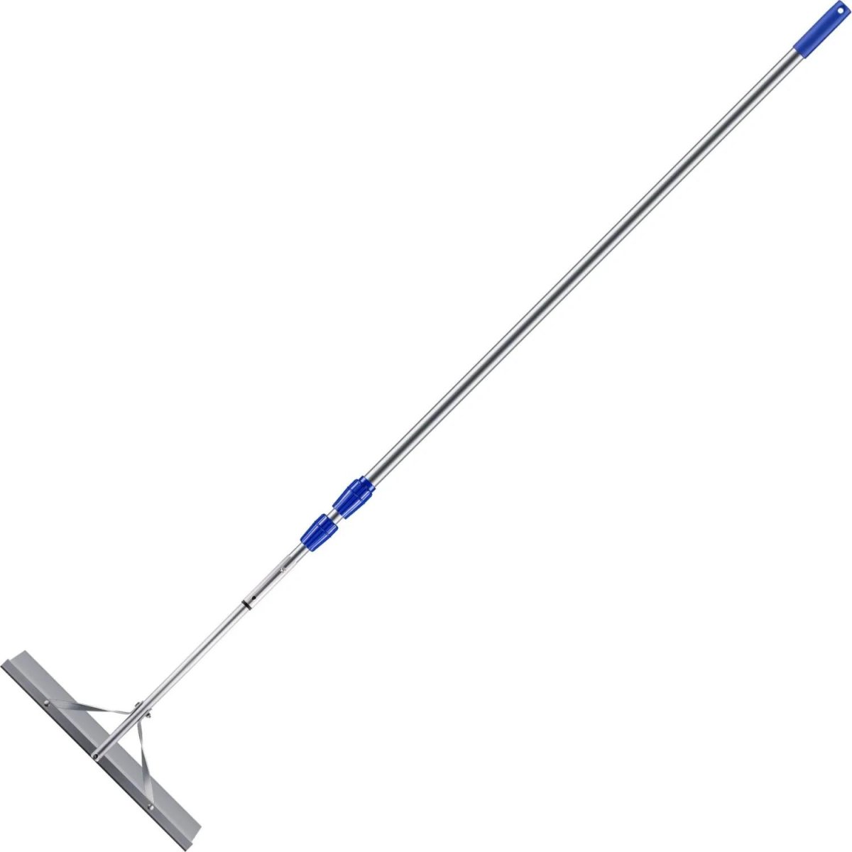Скребок для уборки снега с крыш Truper ROOF-RK 56×11.5 см с черенком 160-480 см (телескопическая рукоятка)<br><br>Скребок для снега Truper 33901 — это профессиональный инструмент, разработанный для безопасного и эффективного удаления снега с крыш различных построек. Благодаря своей конструкции и использованию качественных материалов, он стал популярным выбором среди владельцев загородных домов, дач и других объектов, где необходимо регулярно очищать кровлю от снежных масс.<br>Характеристики:<br>- Материал черенка и рабочей части: алюминий, что обеспечивает лёгкость и долговечность инструмента.<br>- Телескопическая ручка: состоит из трёх алюминиевых трубок, соединённых цангами из АБС-пластика. Длина регулируется от 160 см до 480 см, что позволяет работать на разных высотах без необходимости подниматься на крышу.<br>- Ширина рабочей части: 56 см, что позволяет захватывать большую площадь снега за один проход.<br>- Вес инструмента: всего 2.2 кг, что делает его удобным для длительного использования.<br>Рекомендации по использованию и уходу:<br>- Сборка и разборка: при первом использовании рекомендуется смазать резьбовые соединения и фиксаторы силиконовой смазкой или моторным маслом, чтобы предотвратить их заклинивание.<br>- Хранение: после использования следует очистить инструмент от снега и влаги, разобрать его и хранить в сухом месте. Это продлит срок службы фиксаторов и других элементов.