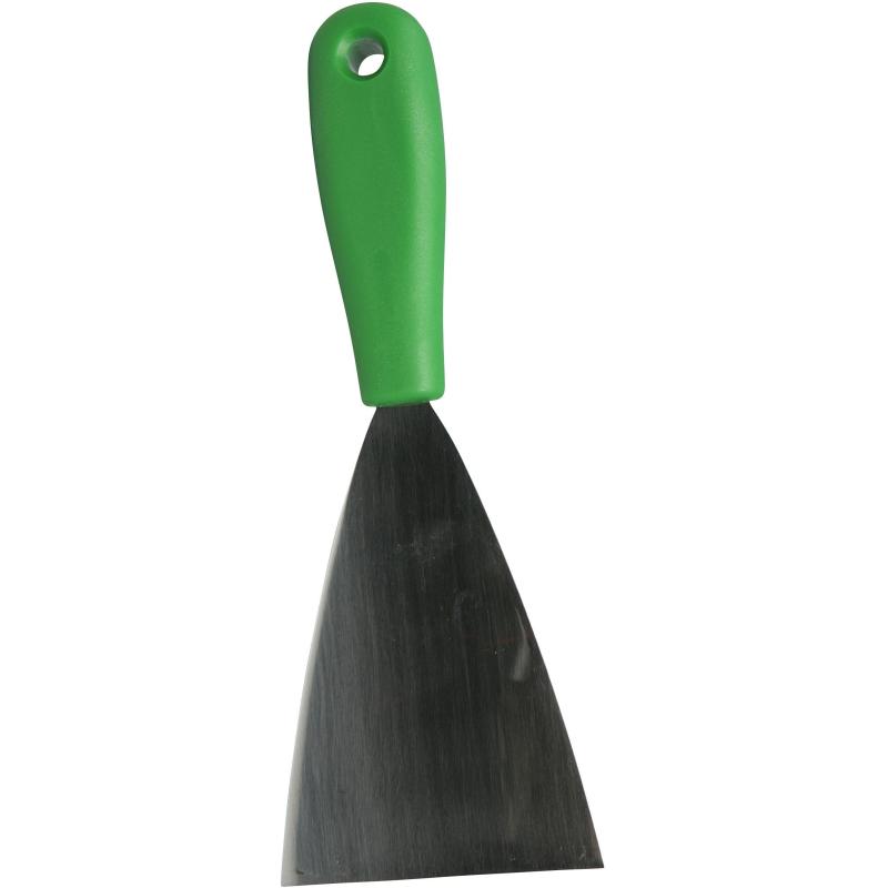 Скребок FBK 80 мм зелёный (88080-5)<br> <br> Скребок для эффективного удаления стойких загрязнений с любых поверхностей. Подходит для пищевых производств, сектора HoReCa и профессиональной клининговой деятельности. Химостойкие материалы сохраняют свои свойства даже при интенсивной эксплуатации.<br> <br> Изделие сочетает прочное полипропиленовое основание с рабочей частью из высококачественной нержавеющей стали (80×98 мм), демонстрируя устойчивость к агрессивным средам. Общая длина — 240 мм.<br> <br> Скребок соответствует требованиям ХАССП и демонстрирует работоспособность в температурном диапазоне от −20°С до +100°С. Допустимо автоклавирование при температуре до +120°С, что гарантирует соблюдение гигиенических норм на производстве.<br> <br> Внешний вид и/или характеристики товара могут быть изменены производителем в соответствии с производственным процессом.