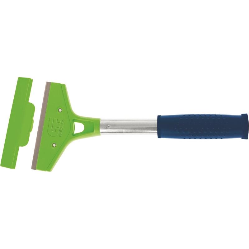 Скребок для окон Сибртех 10 см с двусторонним лезвием 79542<br><br>Скребок предназначен для эффективного удаления загрязнений с гладких поверхностей, таких как стекло, кафель и металл. Устройство оснащено двусторонним лезвием длиной 10 см. Одна сторона лезвия имеет острые края, предназначенные для снятия лакокрасочных покрытий, наклеек, монтажной пены, жвачки и прочих загрязнений подобного характера. Вторая сторона лезвия слегка притуплена и используется для удаления шпаклёвки, цементных растворов и строительных смесей.<br><br>Рукоятка скребка прорезинена, что обеспечивает надёжный хват и удобство использования. Общая длина изделия составляет 30.1 см, ширина рабочей части — 10 см. Материал лезвия — качественная сталь, способствующая долговечности и эффективности работы.<br><br>Внешний вид и/или характеристики товара могут быть изменены производителем в соответствии с производственным процессом.