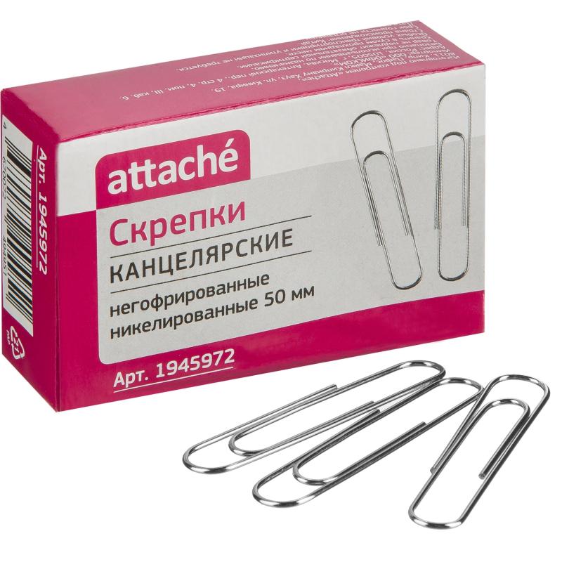 Скрепки канцелярские 50 мм Attache металлические с никелевым покрытием (50 штук в упаковке)<br><br>Скрепки Attache — это надёжное и практичное решение для фиксации документов и бумаг. Изготовленные из никеля, они отличаются прочностью и долговечностью. Особенности и преимущества: надёжная фиксация — прочная конструкция скрепок обеспечивает надёжное скрепление документов. Долговечность материала: никелевая сталь обеспечивает стойкость к коррозии и износу. Удобство использования — овальная форма скрепок обеспечивает лёгкое скрепление и разкрепление документов. Экономичность: большая упаковка позволяет сэкономить на покупке необходимого количества скрепок. Скрепки Attache — идеальный выбор для офиса, дома или школы. Характеристики: Размер: 50 миллиметров. Не являются гофрированными. В упаковке 50 штук.