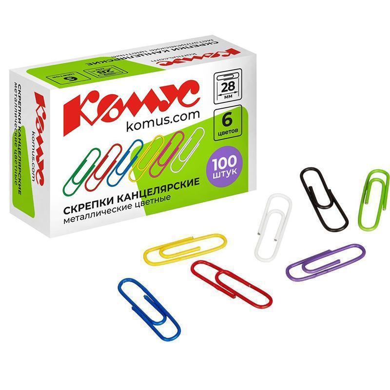 <p>Скрепки Комус незаменимы при работе в офисе или дома, когда нужно соединить несколько бумаг, например, все листы договора или другие важные документы. Скрепки изготовлены из металла с цветным покрытием из пластикового полимера. Имеют удобную закругленную форму, что позволяет надежно скреплять документы. Размер — 28 мм. Разноцветные. Упакованы в картонную коробочку по 100 штук.</p>
