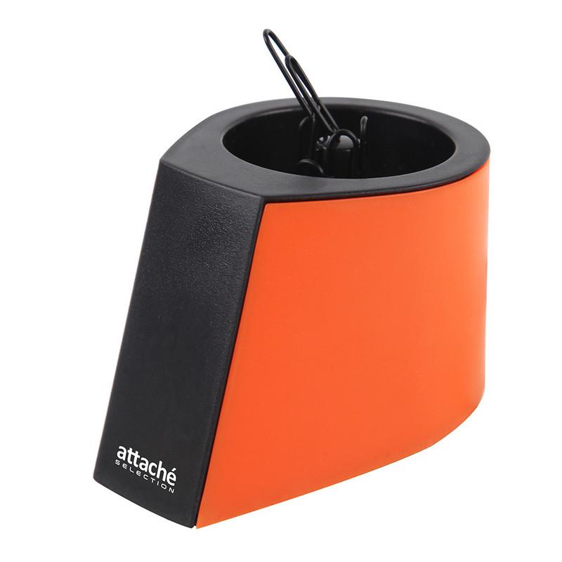 Скрепочница Attache Selection Color предназначена для удобного хранения скрепок на рабочем столе. Он поможет поддерживать порядок на Вашем месте, при этом скрепки всегда будут под рукой в нужный момент. Корпус выполнен из пластика черного и оранжевого цветов. Размер скрепочницы (ШхВ): 91×62 мм. Загрузка скрепок производится сверху. Имеется встроенный магнит, который предотвращает произвольное высыпание скрепок. Максимальная вложенность скрепок 28 мм до 100 штук. В комплекте поставки 50 скрепок черного цвета размером 28 мм.