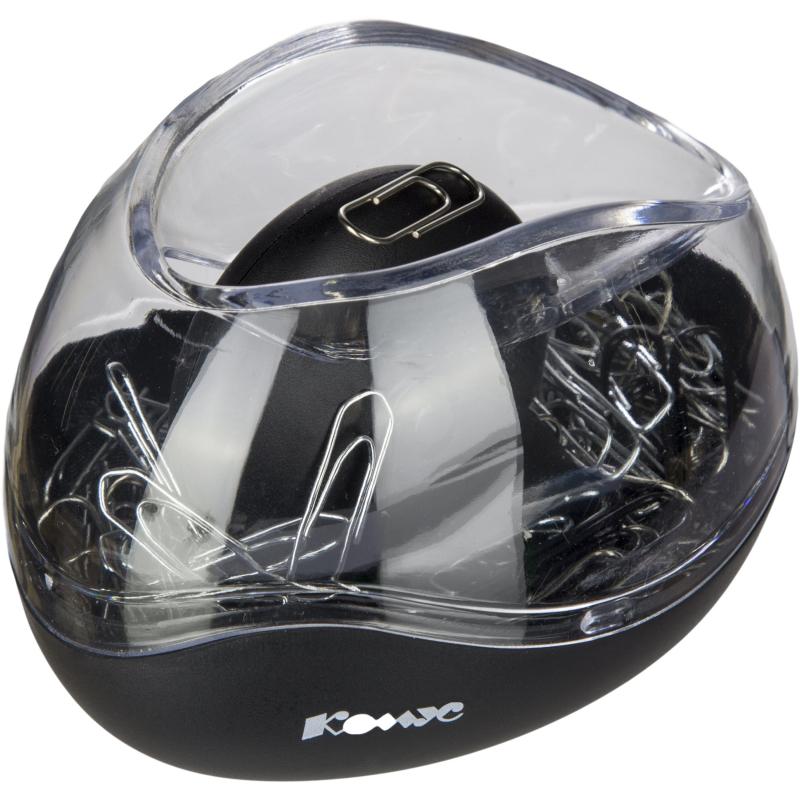 Скрепочница Комус используется для удобного хранения скрепок на рабочем столе. Она поможет поддерживать порядок на Вашем рабочем месте, при этом скрепки всегда будут под рукой в нужный момент. Корпус выполнен из пластика черного цвета с прозрачной вставкой. Размер скрепочницы (ШхВ): 98×76 мм. Загрузка скрепок производится сверху. Встроенное крутящееся магнитное колесико предотвращает произвольное высыпание скрепок. Скрепки в комплект поставки не входят.