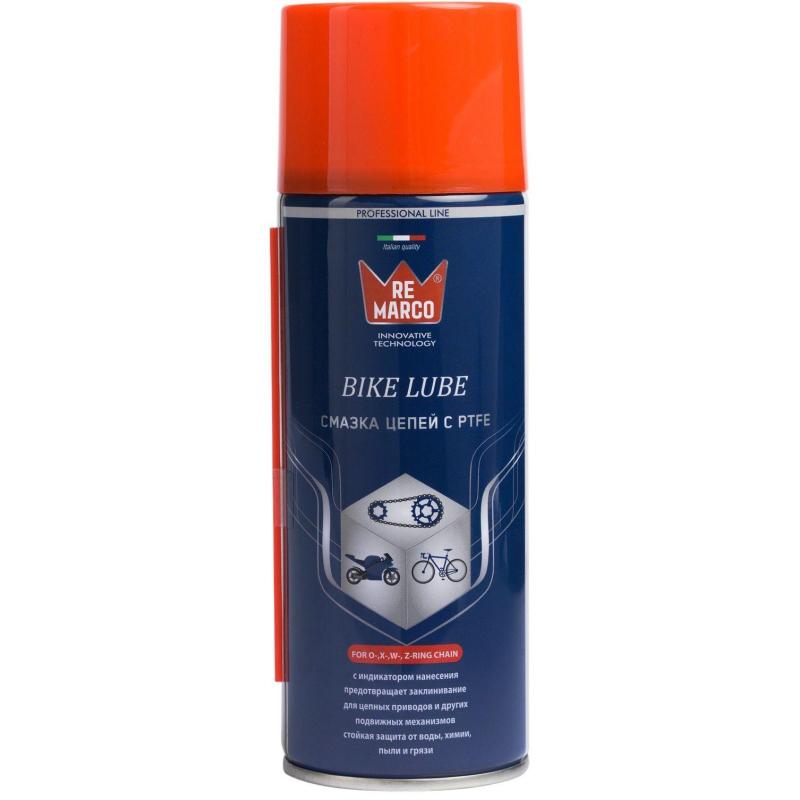 Смазка универсальная Re Marco аэрозоль 400 мл<br><br>Синтетическая смазка на основе PTFE применяется для смазки цепей агрегатов с цепной передачей (скутеры, велосипеды и т.п.). Подходит для обслуживания конвейерных цепей, цепных приводов, тросов, шкивов, тяговых блоков и других промышленных механизмов.Тефлоновая основа обеспечивает длительный смазочный и защитный эффект для всех видов цепей (O-,X-,Z-,W-ring) и звездочек, открытых зубчатых и трансмиссионных передач, поворотных механизмов и направляющих скольжения, работающих в условиях повышенных нагрузок и температур (от — 30°C до + 170°C) в широком диапазоне скоростей.<br>Индикатор нанесения гарантирует надёжный контроль смазки обрабатываемой поверхности.<br><br>Отличительной особенностью являются: <br>• Обладает высокой проникающей способностью, стойкостью к истиранию при повышенном давлении и повышенной адгезией к металлам.<br>• Глубоко проникает в микро-зазоры, образуя стойкую водооталкивающую пленку, защищает от воздействия влаги, реагентов, грязи и сухой пыли.<br>• Придает поверхности свойства повышенной коррозионной устой.<br><br>Внешний вид и/или характеристики товара могут быть изменены производителем в соответствии с производственным процессом.