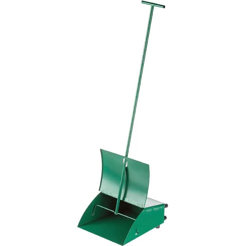Совок- ловушка для мусора с крышкой ЭкоКоллекция металл окрашенный (ширина 27 см, ручка 80 см) изготовлен из металла, выполнен в зеленом цвете. Подходит для уборки больших площадей на улице и в помещениях. Оснащен крышкой, которая автоматически захлопывается при переноске, и удобной длинной ручкой. Вмещает бутылки и банки объемом 0,33 литра. На днище имеются ножки. Общая длина 91 см. <br><br>Размер рабочей части (ковша) — 27×11×30 см.<br>Длина рукоятки — 80 см.<br>Вес изделия — 2.06 кг.