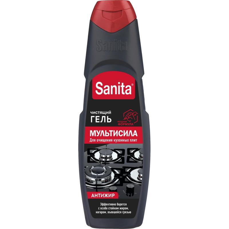 <br><br>Чистящее средство (жироудалитель) для плит Санита Мультисила 0.5 кг от жира и нагара гель для стеклокерамики<br><br><b>Назначение.</b> для ухода за плитой и СВЧ. Идеально подходит для удаления жировых загрязнений с кухонных плит, микроволновых печей, грилей, духовых шкафов, а также для мытья полов на кухне. Усиленная формула геля эффективно удаляет застарелые загрязнения: жир, нагар, пригоревшую пищу и въевшуюся грязь, действует всего за 1 минуту.<br><b>Способ применения.</b> Перед мойкой плит и электроприборов отключить их от источника тока. Нанести средство на охлаждённую загрязнённую поверхность, выдержать 1 минуту, почистить и смыть водой. В случае стойких загрязнений — повторить действие, увеличив время обработки до 7 минут. Поверхности, соприкасающиеся с пищевыми продуктами, тщательно промыть водой. Для мытья полов на кухне использовать раствор средства 2,5 г (½ чайной ложки) на 5 л воды.<br><b>Меры предосторожности.</b> При попадании в глаза вызывает раздражение. Может причинить вред при вдыхании. При работе использовать резиновые перчатки. При попадании на кожу — промыть большим количеством воды. При попадании в глаза — осторожно промыть водой в течение нескольких минут. При необходимости — обратиться за медицинской помощью. Не использовать для чистки нарушенных пластиковых и тефлоновых покрытий, полированных, лакированных, алюминиевых, хромированных, окрашенных поверхностей, покрытий из нержавеющей стали.<br><b>Состав.</b> >5%, но <15% щёлочь, <5% АПАВ, <5%: краситель, ароматизирующий компонент.<br><b>Условия хранения:</b> хранить в плотно закрытой упаковке, в прохладном недоступном для детей месте, отдельно от пищевых продуктов. Средство замерзает, после размораживания сохраняет свои свойства.<br><b>Срок годности.</b> 36 месяцев с даты изготовления (дату изготовления см. на упаковке).