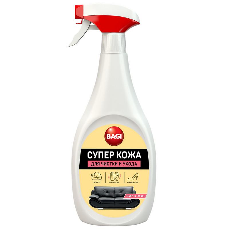 <b>Средство для кожаных изделий Bagi Супер Кожа 400 мл</b> <BR><b>Назначение:</b> Профессиональная формула для кожаных изделий разного типа: мебели, обуви, одежды, аксессуаров. Эффективно очищает, снимая жирный налет и присохшие пятна. Благодаря натуральному воску придает коже естественный блеск, восстанавливает цвет, создает защитную пленку, предотвращает появление потертостей и трещин. Смягчающие компоненты обеспечивают 'Эффект лайковой кожи'. 'Запечатывает' поры кожи, предотвращая впитывание неприятных запахов. Антистатик в составе средства создает пылеотталкивающий эффект. <BR><b>Способ применения:</b> Перед употреблением взболтать, распылить на кожу с расстояния 20–25 см. Втирать средство сухой тряпкой круговыми движениями до полного впитывания. Не допускать высыхания на поверхности кожи. Средство создает защитное покрытие, поэтому рекомендуется обрабатывать поверхность по частям. <BR><b>Меры предосторожности:</b> Не употреблять в пищу! Хранить в недоступном для детей месте. В случае попадания в глаза немедленно промыть проточной водой. В случае проглатывания выпить воды и обратиться к врачу. <BR><b>Состав:</b> Неионогенные <nobr>поверхностно-активные</nobr> вещества<5%, силиконовая эмульсия 15%–30%, воск <5%, ароматизатор, консерванты. <BR><b>Условия хранения:</b> Хранить в сухом прохладном месте. Предохранять от попадания прямых солнечных лучей. <BR><b>Срок годности:</b> 3 года.