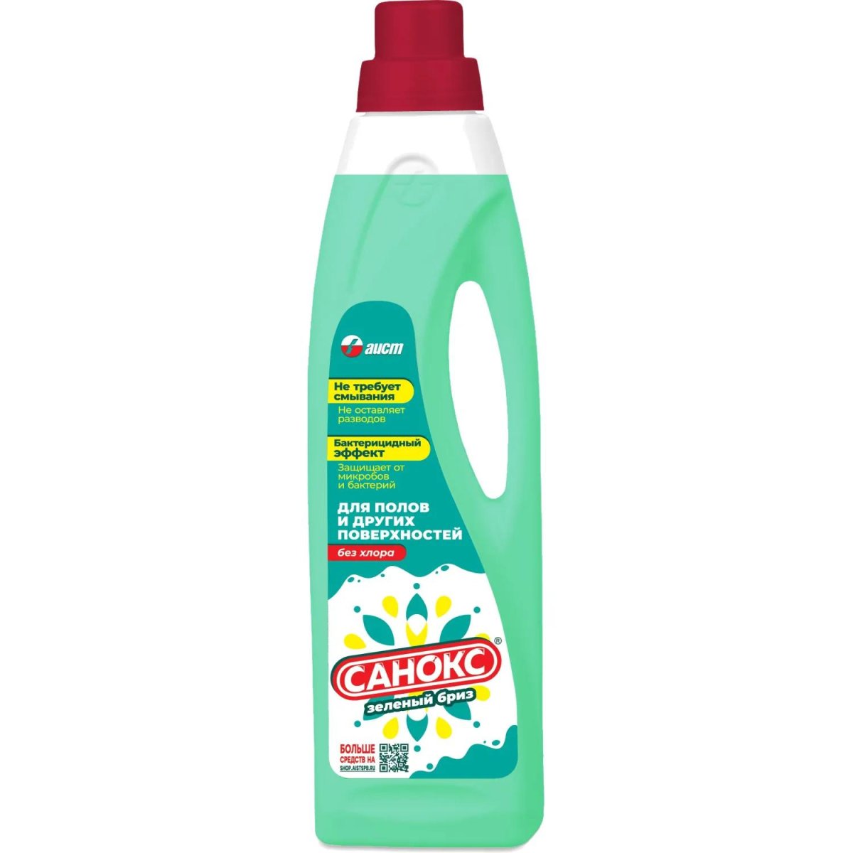 <b>Назначение:</b> средство для мытья пола Санокс Зелёный бриз предназначено для ручного мытья пола, стен и других водостойких поверхностей, а также по уходу за жилищем, предметами домашнего обихода, в т.ч. для мытья и очистки внутренней отделки помещений лечебно-профилактических, санаторно-курортных, детских, дошкольных, школьных и других аналогичных учреждений.<br><b>Способ применения:</b> для больших поверхностей добавить 40 мл (1 колпачок) средства на 4 л воды, помыть обычным способом, не смывая. Для мытья вёдер для мусора и других ёмкостей — выдержать не менее 15 мин. Для удаления «трудных пятен» нанести средство при помощи губки на загрязнение и оставить действовать 15-30 минут, затем промыть водой. После использования средства на поверхностях, которые могут быть в контакте с продуктами питания, необходимо эти поверхности промыть водой.<br><b>Меры предосторожности:</b> при попадании средства в глаза — немедленно промыть их водой. Хранить средство в недоступном для детей месте. Хранить вдали от пищевых продуктов.<br><b>Состав:</b> <5% неионогенные ПАВ, изопропанол, катионные ПАВ, ароматизатор, комплексообразователь, глицерин, краситель, лимонен, гексилциннамаль.<br><b>Условия хранения:</b> хранить при температуре от −5°С до +30°С и относительной влажности не более 95%. После размораживания сохраняет свои свойства. По истечении срока годности средство остаётся безопасным, подлежит утилизации как бытовой отход.<br><b>Срок годности:</b> 18 месяцев с даты изготовления (дату изготовления см. на упаковке).