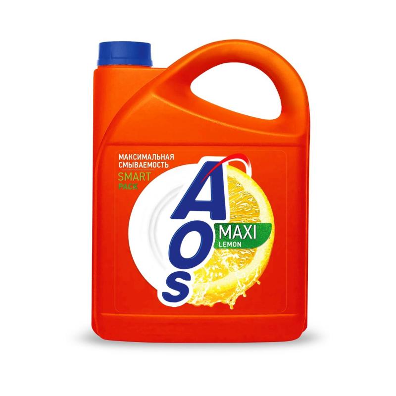 Средство для мытья посуды AOS Лимон гель 4.8 л <br><br>Оптимальный формат упаковки для чистой посуды и удаления жира! Прекрасная густая формула с нейтрализующим ароматом для идеальной чистоты и блеска. Средство эффективно удаляет жир и остатки пищи с поверхности посуды, как в горячей, так и в холодной воде. Бережно воздействует на кожу рук. Главной отличительной особенностью формулы «AOS» является его безопасность, так как оно полностью смывается с поверхности посуды. Идеальное решение для тех, кто заботится о себе и своих близких. «AOS»- для семьи я выбираю лучшее.<br><br><b>Способ применения:</b> для мытья посуды непосредственно под струёй воды нанесите 1–2 капли средства на влажную губку, протрите посуду и ополосните её под струёй воды или растворите 1 чайную ложку средства в 5 л воды, вымойте посуду, ополосните водой. При повышенной жёсткости воды дозу средства увеличить.<br><br><b>Меры предосторожности:</b> беречь от детей. При попадании на слизистую оболочку или глаза промыть их проточной водой.<br><br><b>Состав:</b> 5% или более, но менее 15%: анионные ПАВ; менее 5%: неионогенные ПАВ, соль этилендиаминтетрауксусной кислоты, ароматизирующий компонент (в т. ч. цитраль, лимонен), экстракт лимона, регулятор рН, красители, консервант.<br><br><b>Условия хранения:</b> при температуре от −10 °С до 25 °С, в сухом помещении. Избегать попадания прямых солнечных лучей и не хранить в близи отопительных приборов. Средство замерзает, после размораживания сохраняет свои свойства.<br><br><b>Срок годности:</b> 24 месяца с даты изготовления (дату изготовления см. на упаковке).