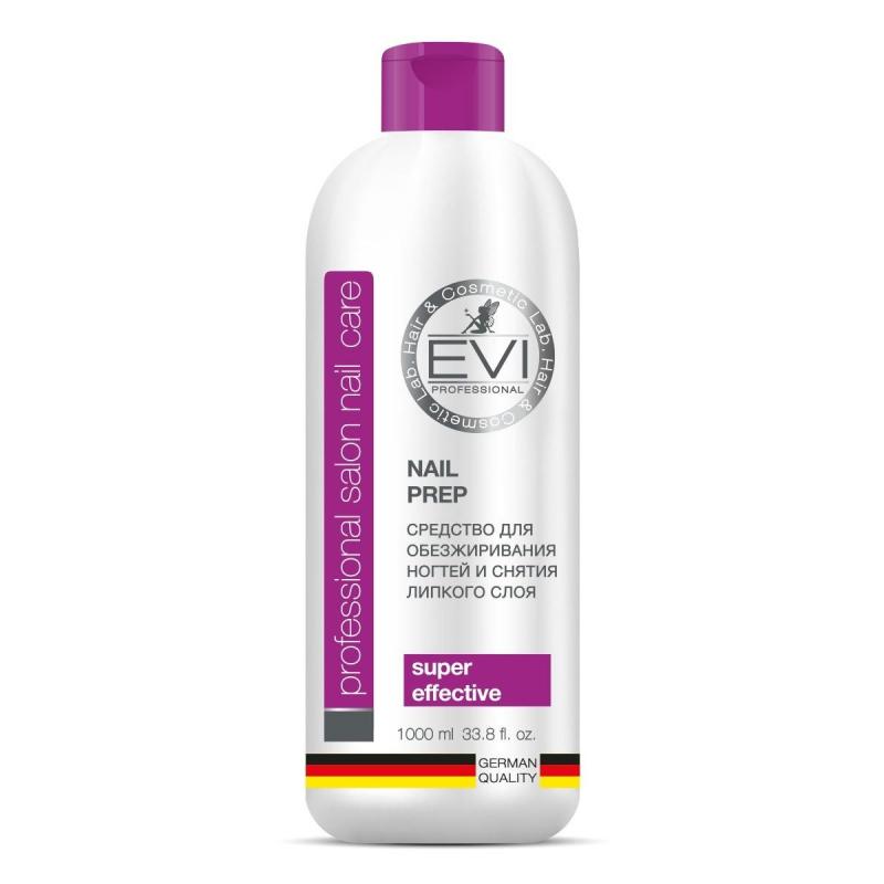 Средство для обезжиривания ногтей и снятия липкого слоя EVI professional 1000 мл<br><br>Обезжиривает ногтевую пластину, мягко удаляя влагу и пыль. Применяется перед нанесением искусственного покрытия (акрил, гель, шёлк) или декоративного лака. Использование средства способствует увеличению стойкости искусственного покрытия или декоративного лака. Предотвращает скалывание и отслаивание покрытия. Также используется как средство для снятия липкого слоя и для очистки кистей. Подходит для работы с натуральными и искусственными ногтями.<br><br>Свойства: <br>— безопасное, эффективное и экономичное средство; <br>— обезжиривает ногтевую пластину, мягко удаляя влагу и пыль; <br>— не наносит вред ногтевой пластине; <br>— способствует увеличению стойкости искусственного покрытия или декоративного лака; <br>— предотвращает скалывание и отслаивание покрытия.<br><br>Преимущества: <br>— изготовлено с заботой о безопасности; <br>— не содержит красители; <br>— в состав каждого продукта входят натуральные масла и экстракты растений, специально подобранные для решения специфических проблем разных типов ногтевой пластины, кожи рук и ног.