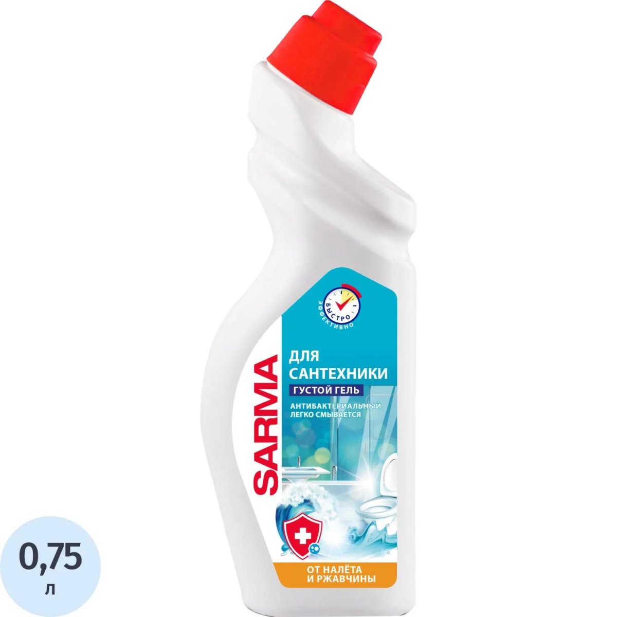 <b>Назначение:</b> средство для сантехники чистящее Sarma Антиржавчина легко наносится под ободок унитаза. Благодаря густой формуле равномерно распределяется, не стекает на дно и работает даже под водой. Удаляет ржавчину, известковые отложения, остатки моющих средств и мочевой камень. Устраняет неприятные запахи, оставляя на поверхности лёгкий аромат свежести. Возвращает сантехники блеск и белизну. Обладает подтверждённым антибактериальным эффектом без хлора.<br><b>Способ применения:</b> нанести средство на очищаемую поверхность или под ободок унитаза, оставить не более, чем на 5 мин, обильно смыть водой.<br><b>Меры предосторожности:</b> осторожно! При попадании раздражает глаза, промыть водой, обратиться к врачу. После работы вымыть руки. Беречь от детей. Токсично для водных организмов. Избегать попадания в окружающую среду. После полного использования средства упаковку утилизировать как бытовой мусор (или вынести на упаковку знак). Полные данные о безопасности продукции находятся в паспорте безопасности.<br><b>Состав:</b> 5-15%: щавелевая кислота; менее 5%: НПАВ, отдушка, краситель.<br><b>Условия хранения:</b> хранить в плотно закрытом флаконе, отдельно от пищевых продуктов, в недоступном для детей месте, при температуре от +5°С до +25°С.<br><b>Срок годности:</b> 24 месяца с даты изготовления (дату изготовления см. на упаковке).