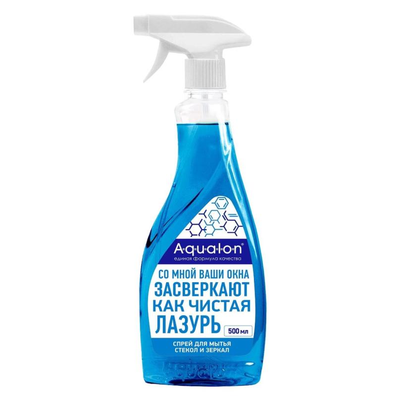 Средство для мытья стёкол и зеркал Aqualon Лазурь 0.5 л<br><br><b>Назначение.</b> Предназначено для мытья зеркал, оконных и автомобильных стёкол, пластиковых оконных рам, витрин, кафеля, изделий из хрусталя, пластика и других водостойких поверхностей. Современная рецептура на основе изопропилового спирта позволяет эффективно без разводов удалять грязь, пыль, отпечатки пальцев, жировые и другие загрязнения. Придаст очищенной поверхности приятный аромат и лазурную чистоту.<br><b>Способ применения.</b> Повернуть носик распылителя в положение «SPRAY» или «ON». Нанести средство на очищаемую поверхность с расстояния 15-25 см. Протереть хорошо впитывающей салфеткой, мягкой тканью или сгоном. При сильном загрязнении процедуру повторить.<br><b>Меры предосторожности.</b> Не распылять в лицо и глаза! Не употреблять внутрь. Хранить в недоступном для детей месте.<br><b>Состав.</b> Деминерализованная вода, нПАВ (<5%), изопропанол (<5%), парфюмерная композиция, консервант, краситель.<br><b>Условия хранения.</b> Хранить в вертикальном положении при комнатной температуре вдали от прямых солнечных лучей. В случае замерзания после размораживания сохраняет свои свойства. После размораживания встряхнуть.<br><b>Срок годности.</b> 3 года с даты изготовления (дату изготовления см. на упаковке).