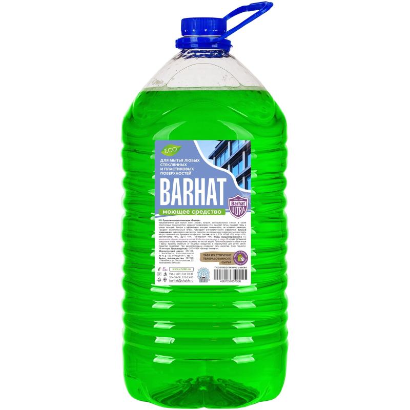 Средство для мытья стёкол и зеркал Бархат-Ultra 5 л<br><br><b>Назначение.</b> Предназначено для мытья окон, зеркал, витрин, автомобильных стёкол, а также пластиковых поверхностей, экранов телевизоров и т.п. Удаляет пятна, смывает грязь и следы пальцев. Быстро и эффективно очищает поверхность, не оставляя разводов. Придаёт ослепительный блеск. Обладает антистатическим эффектом.<br><b>Способ применения.</b> Равномерно распылить средство на очищаемую поверхность и протереть насухо тканевой или бумажной салфеткой.<br><b>Меры предосторожности.</b> Не распылять вблизи открытого огня! Избегать попадания в глаза. В случае попадания средства в глаза немедленно промыть их чистой водой. При необходимости обратиться к врачу.<br>Состав: вода >30%, АПАВ <5%, спирт <5%, ароматизатор <5%, ЭДТА <5%, консервант <5%.<br><b>Условия хранения.</b> Хранить отдельно от пищевых продуктов, в недоступном для детей месте. Средство замерзает. При размораживании сохраняет свои свойства.<br><b>Срок годности.</b> 36 месяцевс даты изготовления (дату изготовления см. на упаковке).