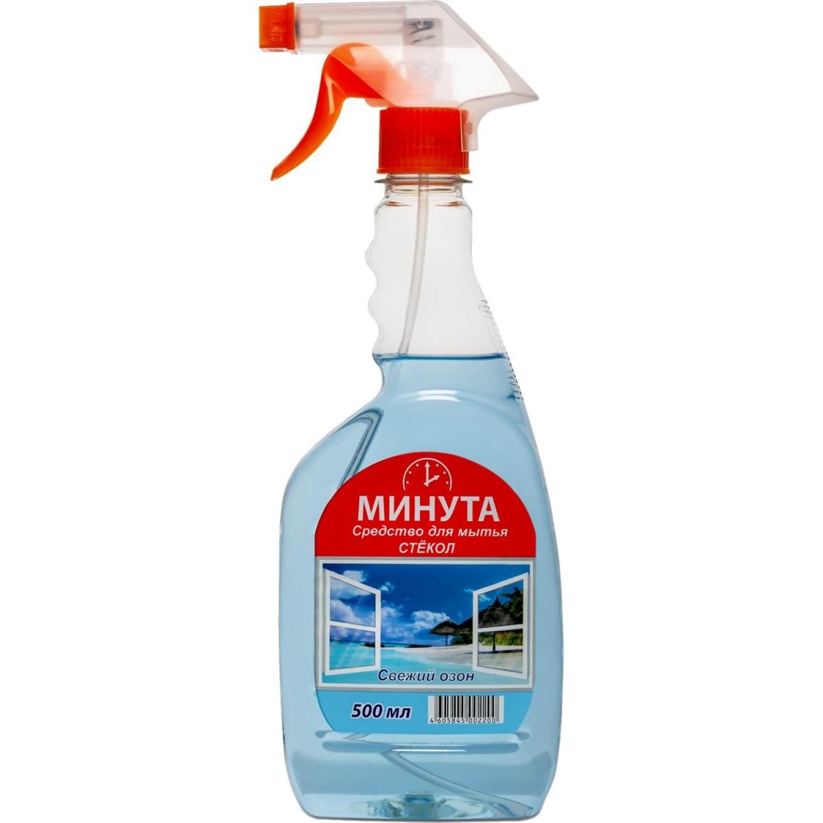 Средство для мытья стёкол и зеркал Минута Свежий озон 0.5 л<br><br><b>Назначение:</b> эффективное средство для мытья стёкол, окон, зеркал. Удаляет пятна. Смывает грязь, следы от пальцев. Защищает от пыли и придаёт блеск. Не оставляет разводов.<br><b>Способ применения:</b> повернуть насадку распылителя в положение «SPRAY». Равномерно распылить средство с расстояния 15-25 см на очищаемую поверхность. Насухо протереть поверхность тканью или бумажной салфеткой. Повернуть насадку распылителя в положение «OFF».<br><b>Меры предосторожности:</b> использовать только по назначению! Хранить отдельно от пищевых продуктов, в недоступном для детей месте. Избегать вдыхания средства при распылении. Избегать попадания средства в глаза. В случае попадания средства в глаза немедленно промыть их чистой водой. Не распылять вблизи открытого огня. Не использовать на лакированных и полированных поверхностях<br><b>Состав:</b> ≥30% вода, >5%, <15% изопропанол, <5% этиленгликоль, <5% АПАВ, <5% парфюмерная композиция, <5% тетранатриевая соль этилендиаминтетрауксусной кислоты, <5% консервант, <5% краситель.<br><b>Условия хранения:</b> хранить при температуре не ниже −20 С и не выше +30 С. Средство замерзает, после размораживания сохраняет свои свойства.<br><b>Срок годности:</b> 5 лет с даты изготовления (дату изготовления см. на упаковке).