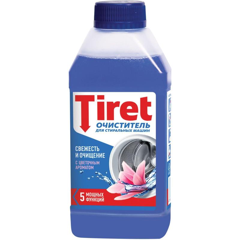 Средство для удаления накипи Tiret для стиральных машин жидкость 250 мл. <BR>Назначение. <BR>Очиститель для стиральных машин нейтрализует неприятный запах. Устраняет известковый налет и накипь, удаляет мыльный налет. Очищает внутренние части стиральной машины и обеспечивает гигиеническую чистоту. <BR>Способ применения. <BR>Убедитесь, что внутри стиральной машины нет белья. Открутите крышку. Добавьте небольшое количество средства на губку и протрите отсеки для моющего средства и ополаскивателя. Залейте остаток жидкости в отсек для моющего средства. Включить программу стирки белья при 60°C и дать машине полностью ее выполнить. <BR>Меры предосторожности.<BR>Храните в недоступном для детей месте, вдали от продуктов питания и напитков. Избегайте попадания в глаза и на кожу. В случае попадания в глаза немедленно промойте их большим количеством воды и обратитесь к врачу. Вымойте руки после использования. При чувствительной коже используйте защитные перчатки. Не глотать. При случайном проглатывании запейте большим количеством воды и немедленно обратитесь к врачу, показав упаковку. <BR>Состав.<BR>15% или более, но менее 30%: лимонная кислота, менее 5%: неионогенные ПАВы, ароматизатор. ГОСТ/ТУ.<nobr>ГОСТ 32478–2013.</nobr> <BR>Условия хранения. Храните в недоступном для детей месте, вдали от продуктов питания и напитков. Хранить при температуре от — 10 до 40°C. <BR>Срок годности. 2 года.