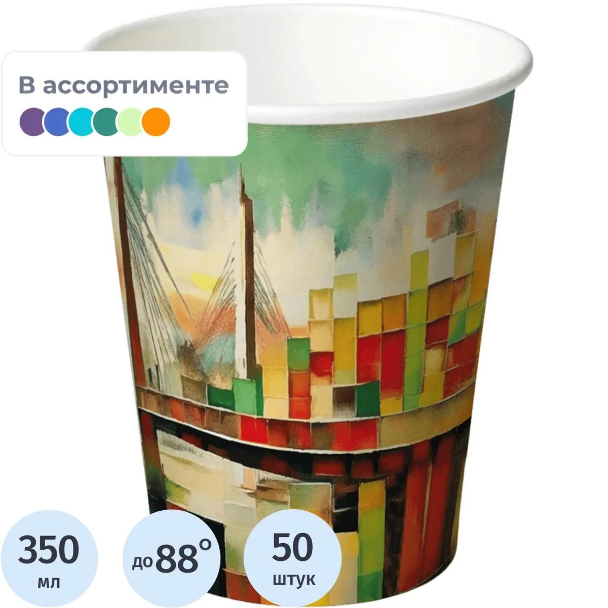 Стакан одноразовый бумажный Города 350/400 мл (50 штук в упаковке)<br><br>Стакан одноразовый бумажный Города 350/400 мл (50 штук в упаковке)<br><br>Бумажный стакан подходит для подачи холодных и горячих напитков и имеет рабочий объём 350мл при полном объёме 400мл. Он изготовлен из первичного сырья и состоит из одного слоя бумаги. Разноцветный корпус украшен рисунком, а диаметр 90мм делает стакан удобным для стандартных крышек и держателей. Стакан выдерживает температуру воды до 88°C и относится к средней ценовой категории.