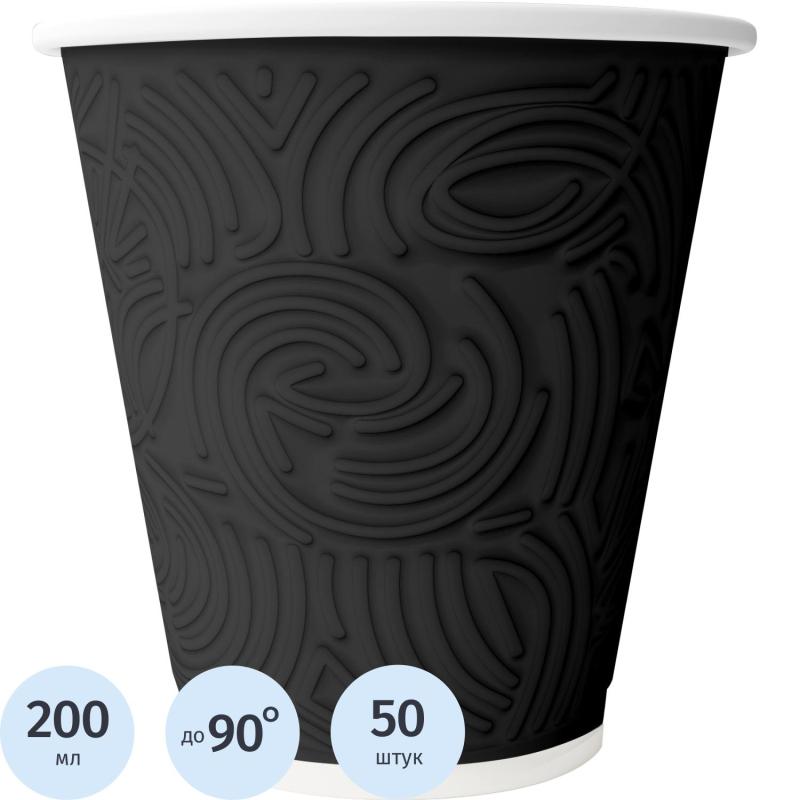 Стакан одноразовый бумажный Сканди Пакк Лабиринт 200/271 мл чёрный (50 штук в упаковке) <br><br>Фактурная внешняя стенка стакана сохранит напиток горячим дольше и позволит насладиться мгновением, впечатлиться прикосновениями, вдохновиться окружающим миром и зарядиться энергией на весь день. <br>Стаканы подходят для горячих напитков (кофе, кофейных напитков, чая и др.). Удовольствие от прикосновения благодаря рельефной внешней стенке. Отличная термоизоляция для комфортного использования. Напиток остаётся горячим дольше и не обжигает руки.<br>Гарантированная защита от протекания при использовании с крышкой Сканди Пакк. Идеальная геометрия обеспечивает плотное прилегание крышки. <br>100% целлюлозный картон. <br>Стакан пригоден для вторичной переработки.