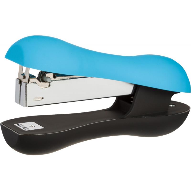 <p>Степлер вертикальный Attache Comfort один из самых важных помощников для работы с документацией в офисе, образовательных учреждениях и дома. Настольный степлер выполнен в пластиковом корпусе черного и голубого цвета. Корпус имеет мягкое покрытие Soft Touch, что делает комфортным сшивание при длительной работе. Рабочие компоненты изготовлены из высококачественной стали. Степлер Attache Comfort одновременно сшивает до 20 листов бумаги плотностью до 80 г/кв.м. Степлер скрепляет бумагу закрытым типом сшивания, при котором ножки скобы загибаются внутрь. Это дает возможность надежно хранить сшитые документы на протяжении длительного времени. Степлер совместим со скобами № 24/6 и 26/6. Глубина закладки бумаги — 65 мм (6,5 см). Вместимость лотка для скоб: 100 скоб размером № 24/6, 150 скоб размером № 26/6. Размер изделия: 142×73×43 мм. Вертикальный степлер Attache Comfort занимает минимум пространства на столе.</p>