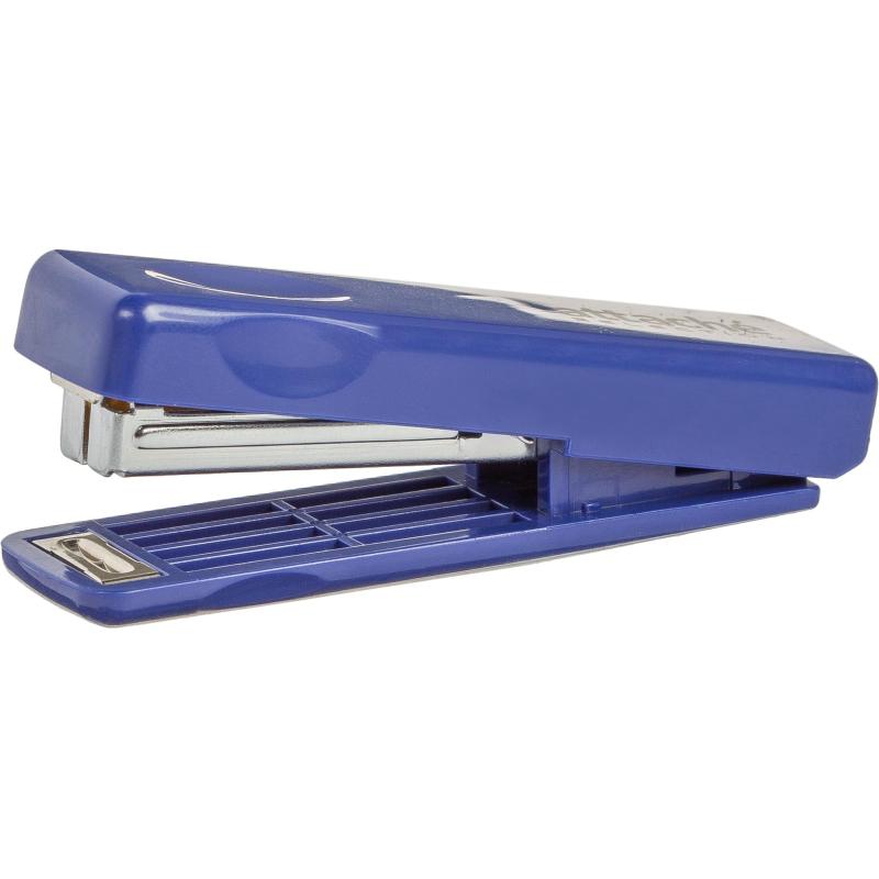 <b>Обращаем внимание, что для начала работы со степлером необходимо перевести железный упор, находящийся под пластиковой крышкой степлера, из состояния Lock в состояние Set (промаркировано, нанесены стрелки направления перемещения упора). При необходимости привести степлер в плоское состояние необходимо перевести упор из состояния Set в состояние Lock.</b><BR><BR>Степлер Attache Selection выполнен в пластиковом корпусе синего цвета. Рабочие компоненты изготовлены из высококачественной стали. Степлер совместим со скобами № 10, одновременно сшивая до 10 листов бумаги плотностью до 80 г/кв.м. Модель компактна и принадлежит к типу складных степлеров, что дает возможность хранить ее как в сумочке, так и в кармане пиджака. Степлер сшивает как закрытым, так и прямым типом сшивания. Закрытый тип сшивания, при котором ножки скобы загибаются внутрь, дает возможность надежно хранить сшитые документы на протяжении длительного времени. Прямой тип сшивания, при котором ножки скобы не загибаются, позволяет прикреплять объявления или документы к мягкой поверхности, например к пробковой доске. Для этого достаточно раскрыть степлер на 180 градусов и закрепить документ. Вместимость лотка для скоб: 50 скоб размером № 10. Глубина закладки бумаги: 41 мм.