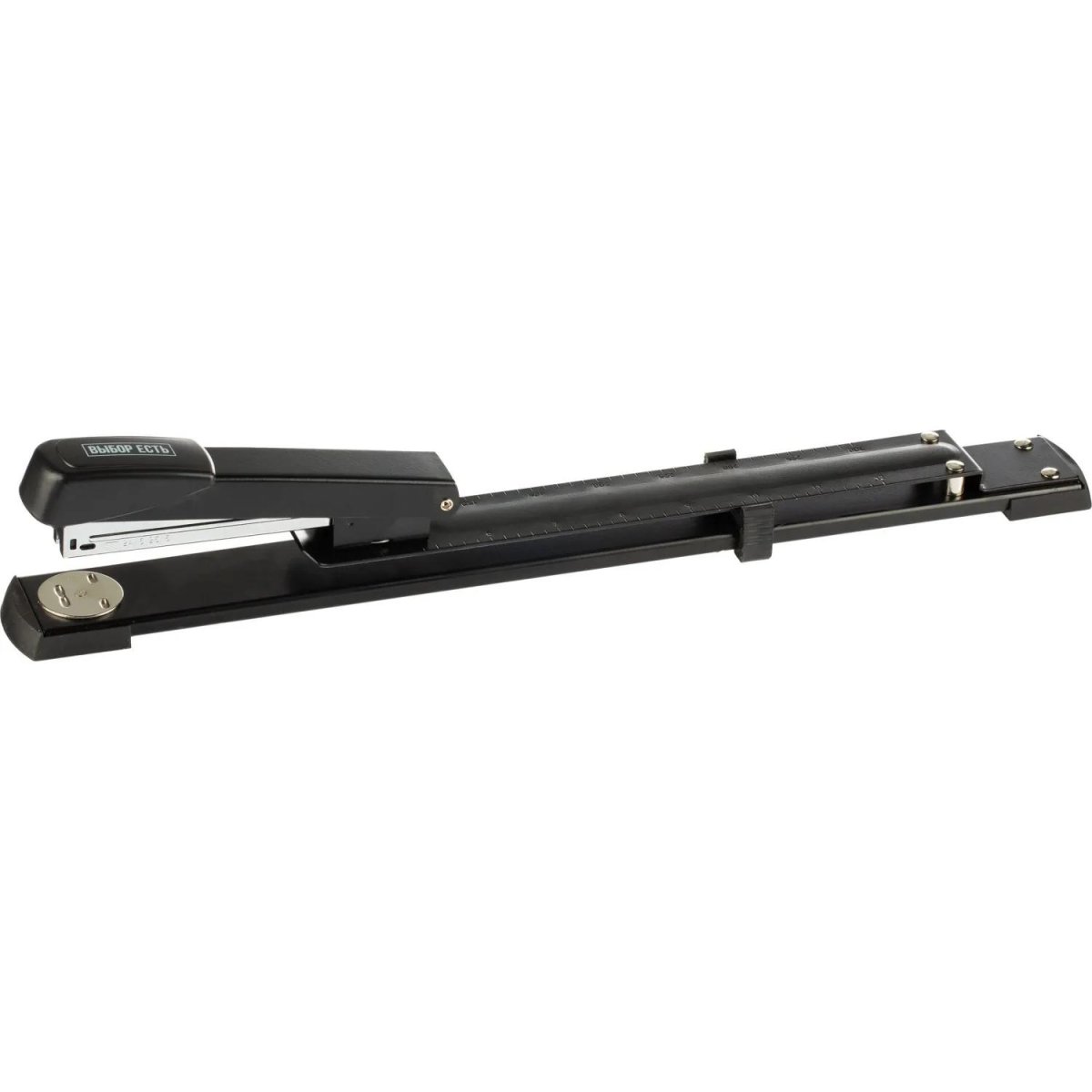 Степлер-брошюровщик предназначен для сшивания документов толщиной до 25 листов. Подходит для закрытого и открытого видов сшивания, что делает его удобным для брошюровки, оформления отчётов и презентаций.<br><br>Корпус выполнен из прочного пластика и металла, а внутренний механизм — полностью металлический, что обеспечивает долговечность и стабильную работу. Глубина закладки бумаги 320 мм позволяет скреплять листы не только по краю, но и в центре, создавая полноценные брошюры.<br><br>Степлер загружается горизонтально, совместим со скобами 24/6 и 26/6. В комплекте скобы не поставляются. Размер устройства — 400×37×70 мм.